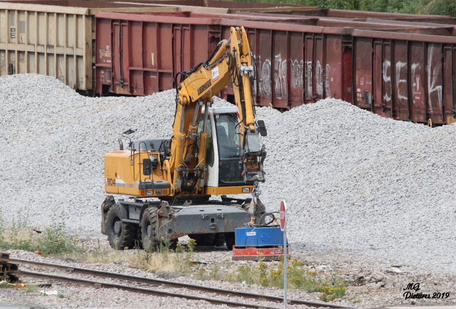 présence d'une Pelle route LIEBHERR 904 de Meccoli sur la base de travaux du Puy-Imbert le 16-07-2019