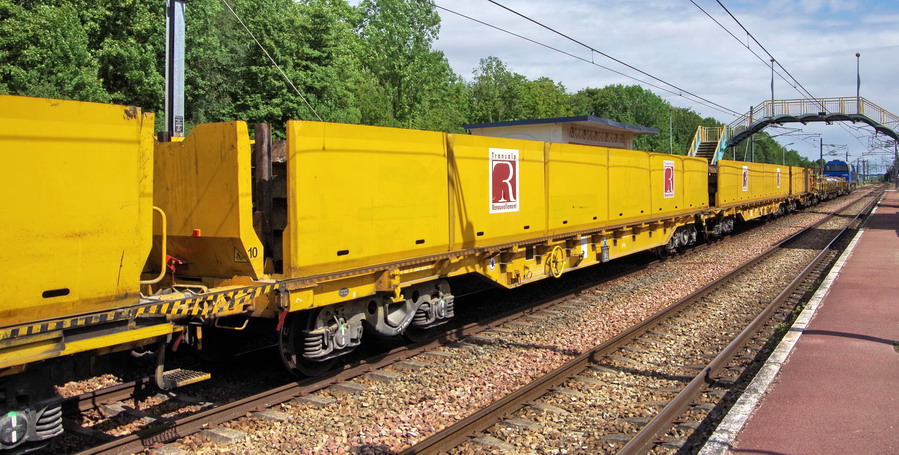 Rame de wagons Falns de Rolanfer 99 87 9 352 xxx-x de Transalp Renouvellement gare de Poix de Picardie le 30-07-2019
