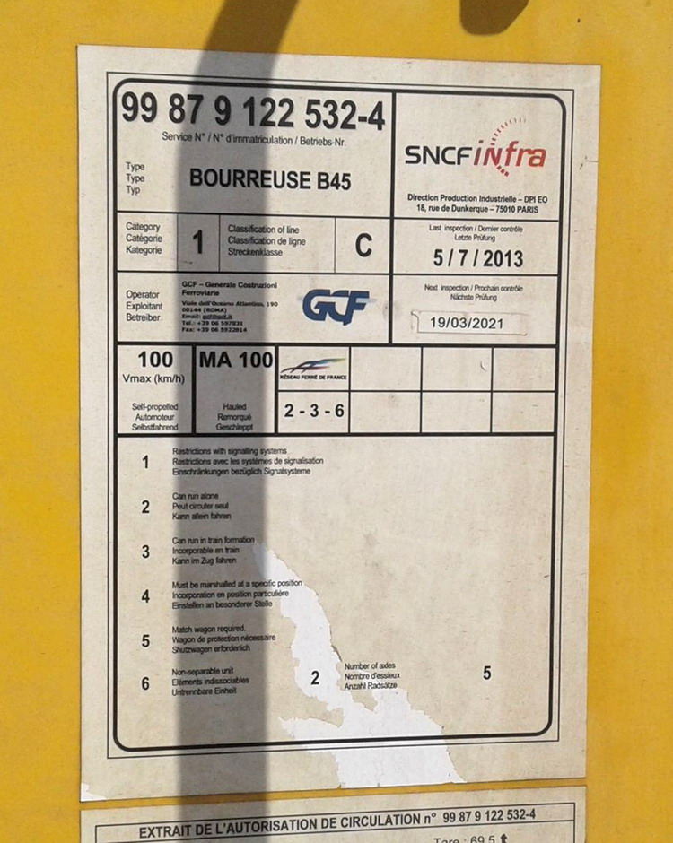 Bourreuse B45 D - 99 87 9 122 532-4 - GCF Roma en gare de Poix-de-Picardie (80) le 03-09-2019