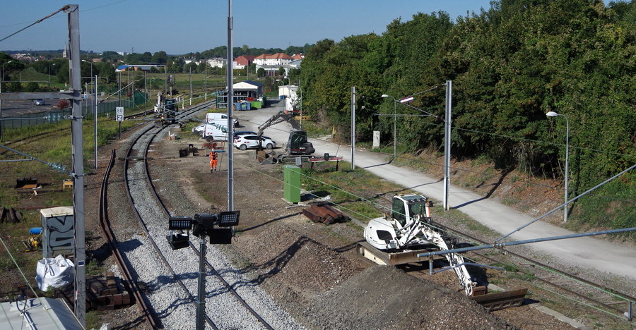 vue sur le chantier de renouvellement d'aiguillages à compiègne direction Creil le 15-09-2019