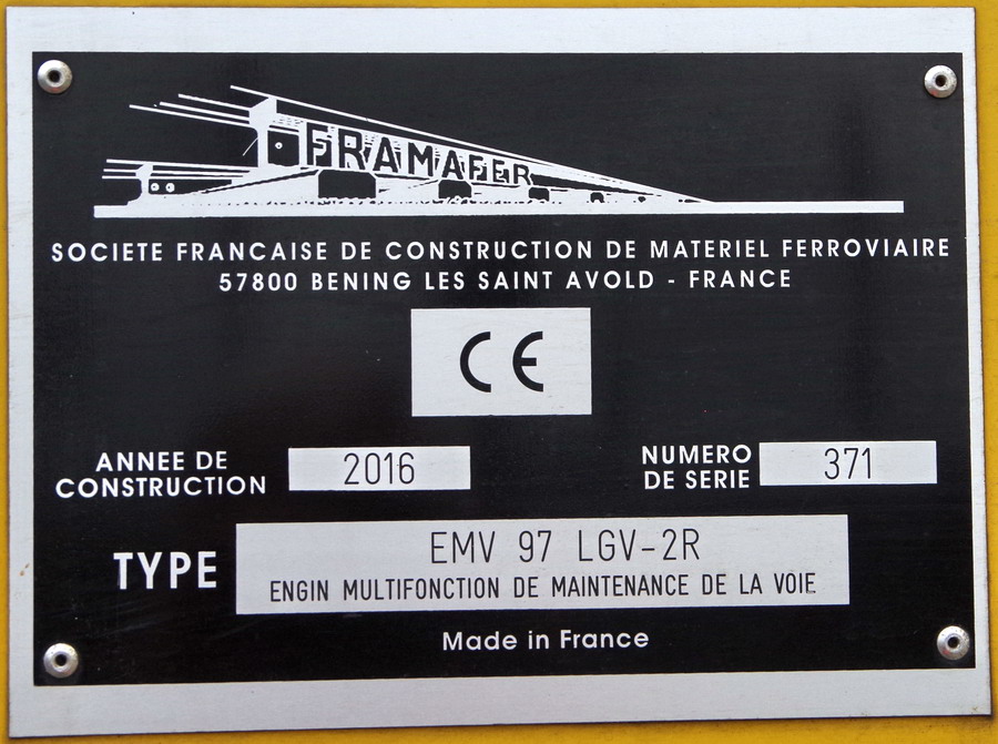 Voici un nouveau engin multifonction de maintenance de la voie de type EMV 97 LGV-25 de Framafer n°371 - 2016