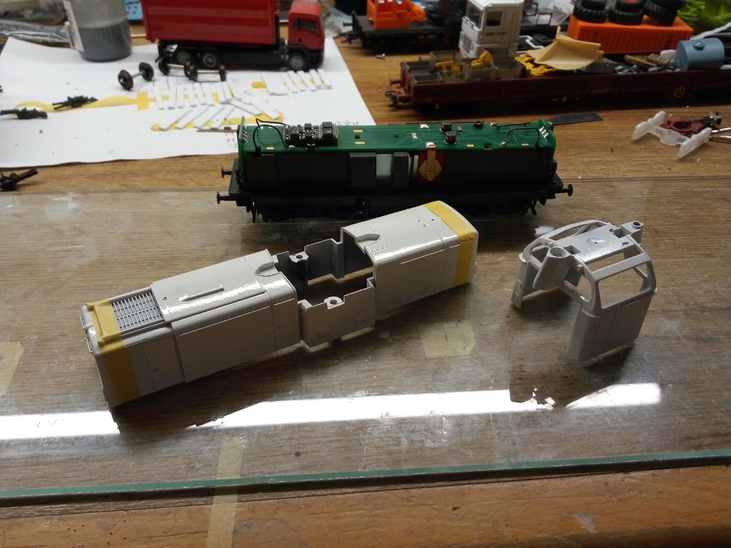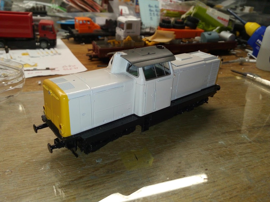 après mise en peinture du châssis, de la caisse et de la cabine puis mise en place des décalques (Tchou Tchou pour Drouard) la voici prête a roulé un nouveau train de travaux