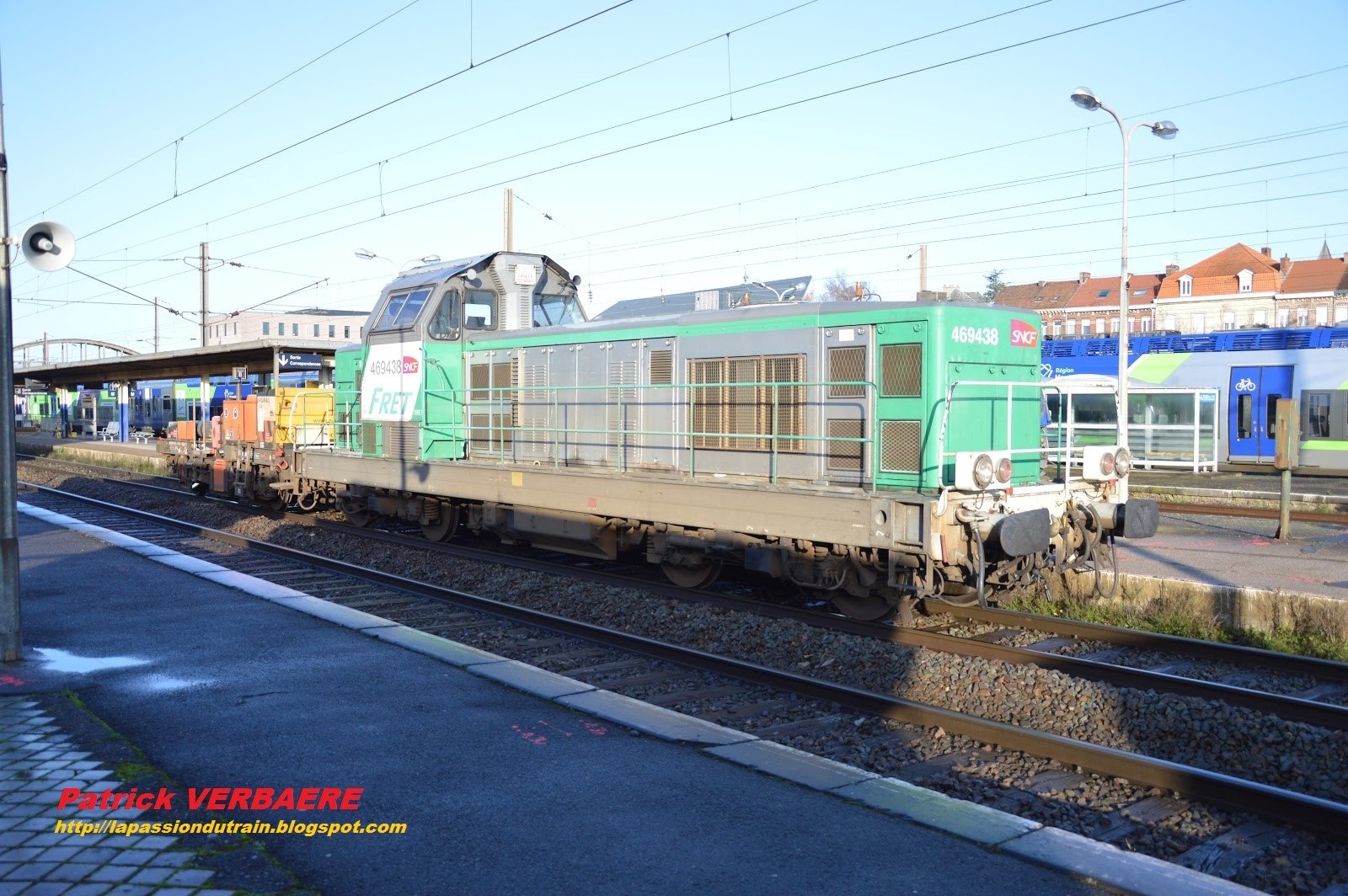 Voici la 469438 Infra (ex 66438) en livrée Fret sur un train Mauzin en gare de Tours le 17-02-2014