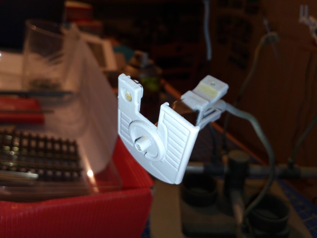 après avoir lavé le modèle il reçoit une couche d'apret puis une couche de gris alu (pour recouvrir tout les différente couleurs du modèle) puis mise en blanc