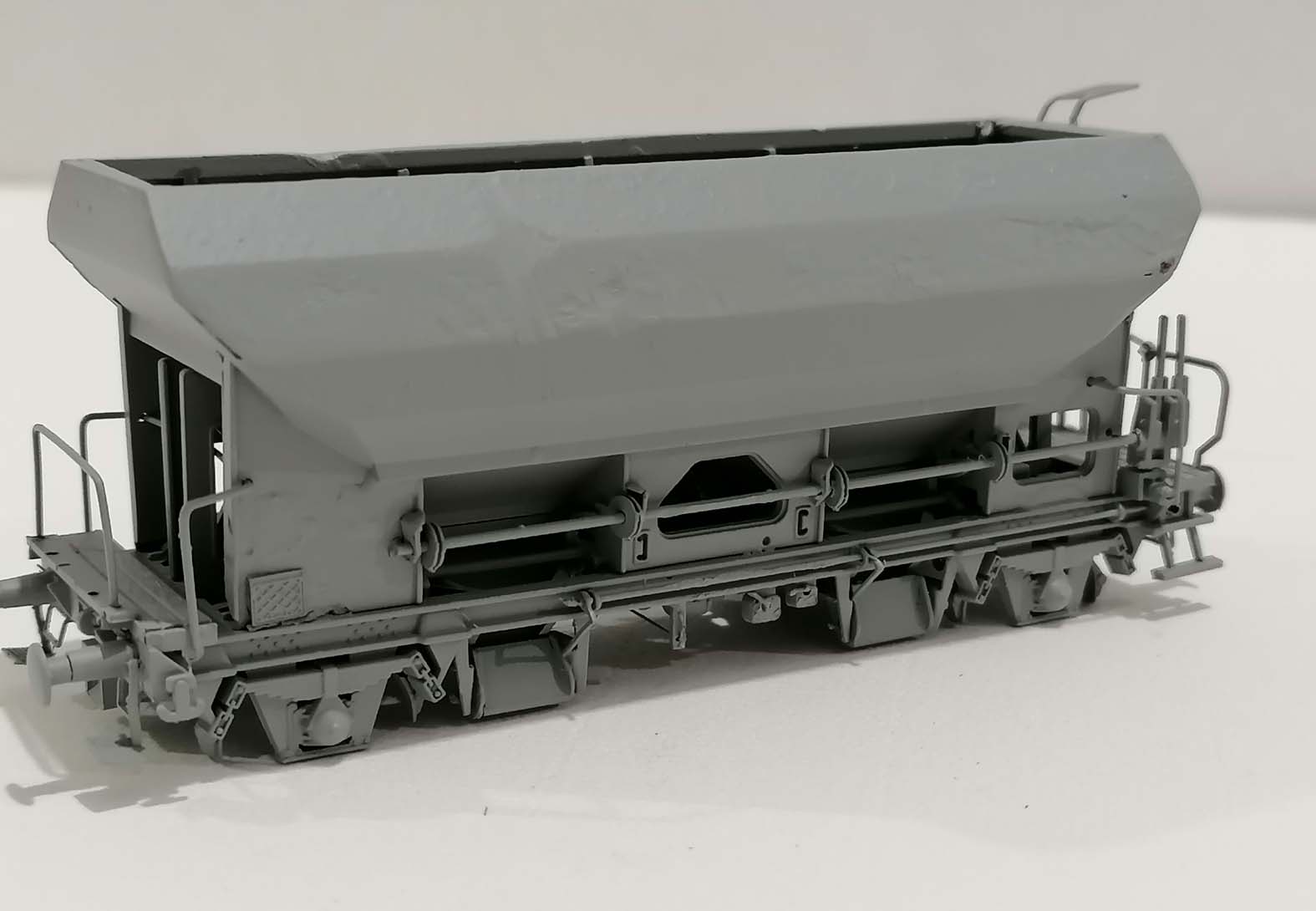 Je fais des patines et je voudrais faire des trémies à essieux Uas sur la base de wagon roco V. J'ai bien vu que le modèle roco n'est pas tout à fait conforme (2 échelles, rambardes fausses, ...) mais surtout il est rempli de ballast à ras bord.