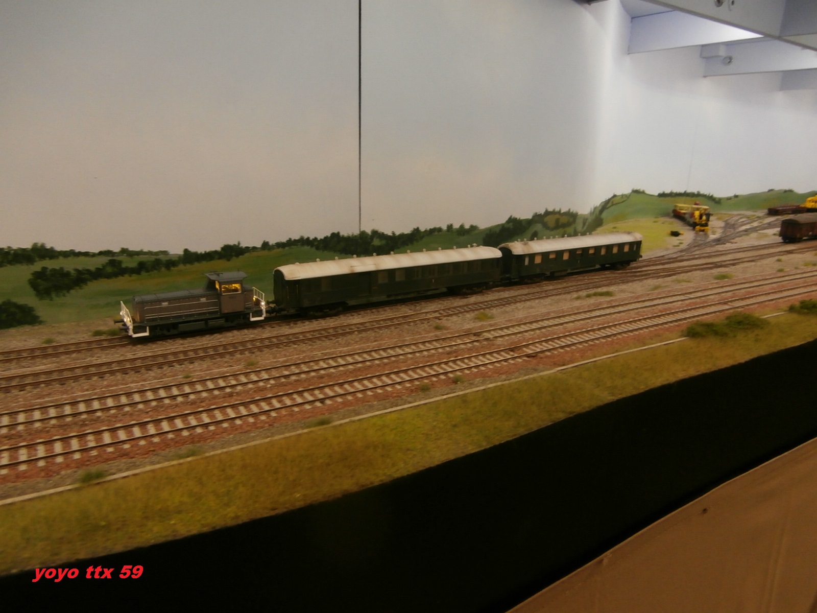 Je commence avec ce train parc composer de couverts a essieux , un couvert a bogies et de deux voitures de cantonnement .