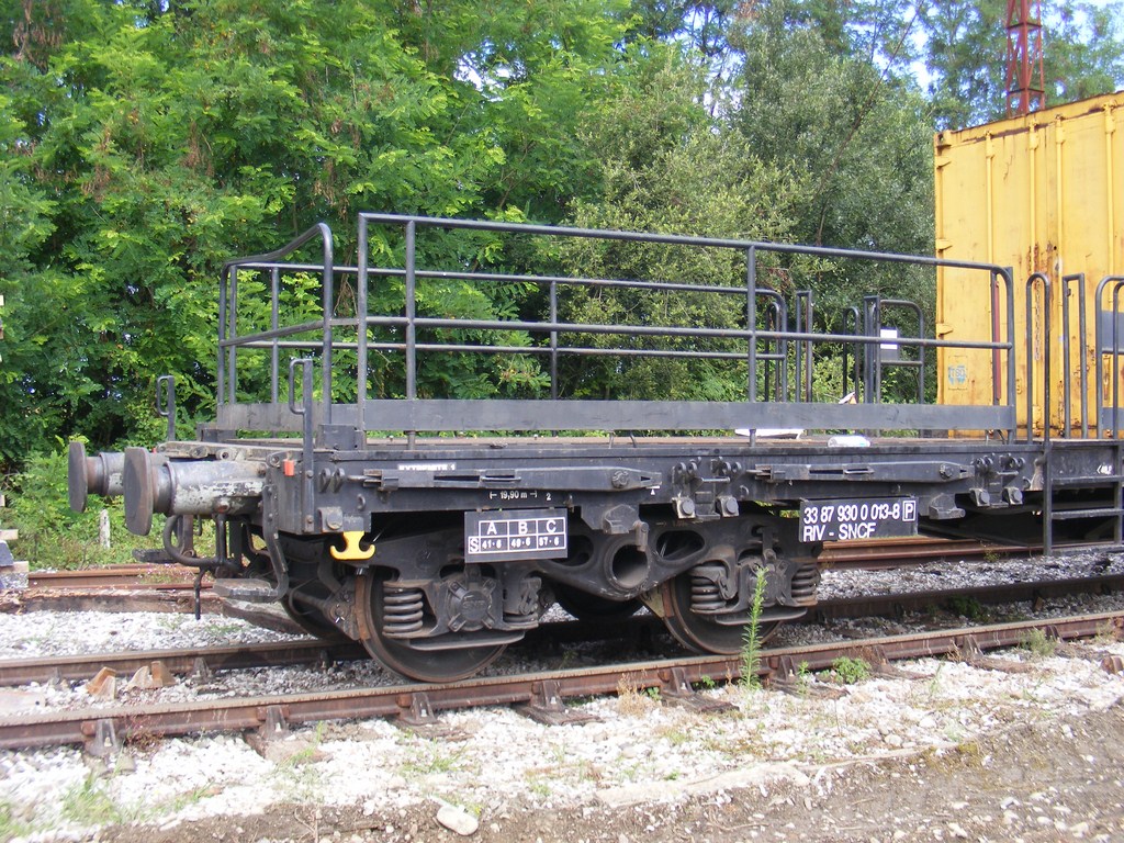 un plat immatriculé "wagon de particulier", pratique courante chez TSO. A noter l'ancien logo TSO sur le container.