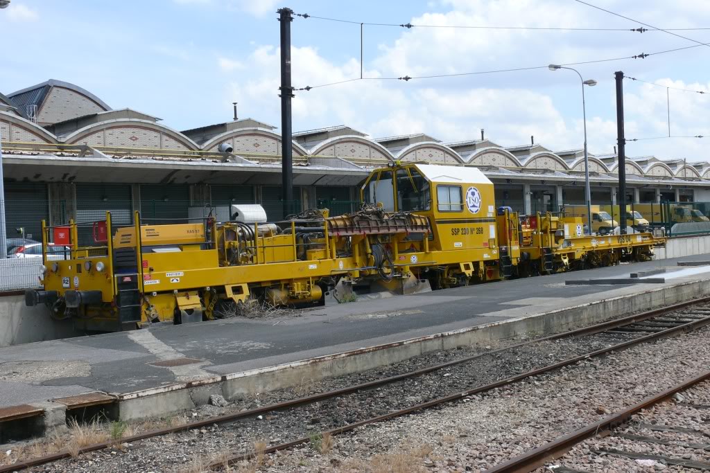 Un des engins utilisés sur le RVB sur les voies du RER D à la sortie de Paris Lyon.