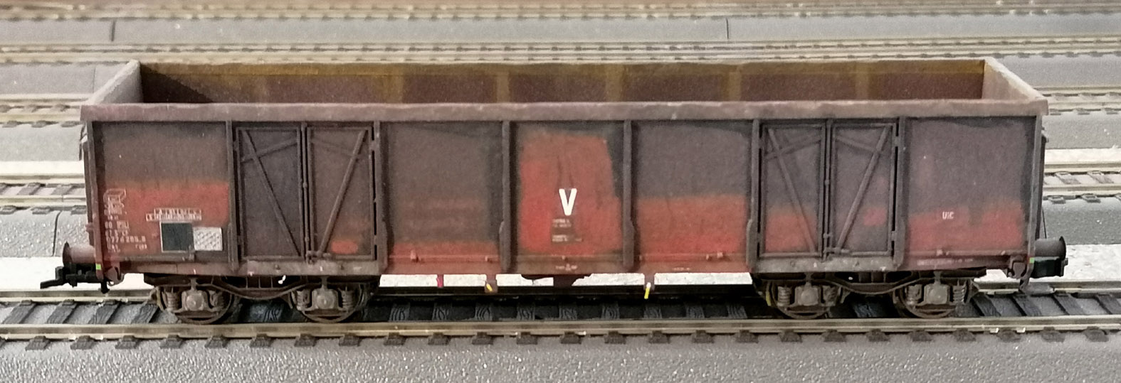 Poursuite des patines avec un autre wagon Uas F28 patiné à partir d'un modèle roco.