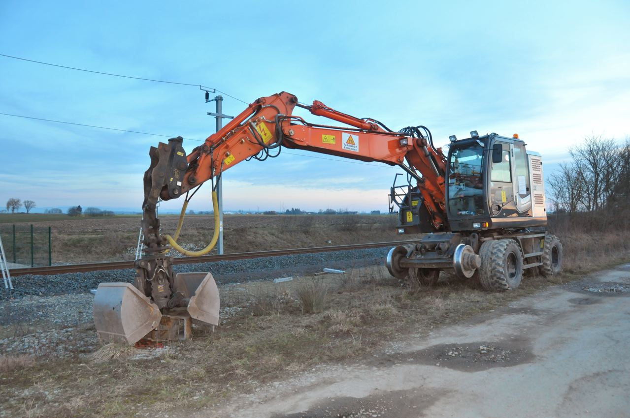 Voici une pelleteuse Hitachi ZX 150 / 170 - D2R - TPe - Taponnot au bord de la bretelle LGV-Est <=> Reding