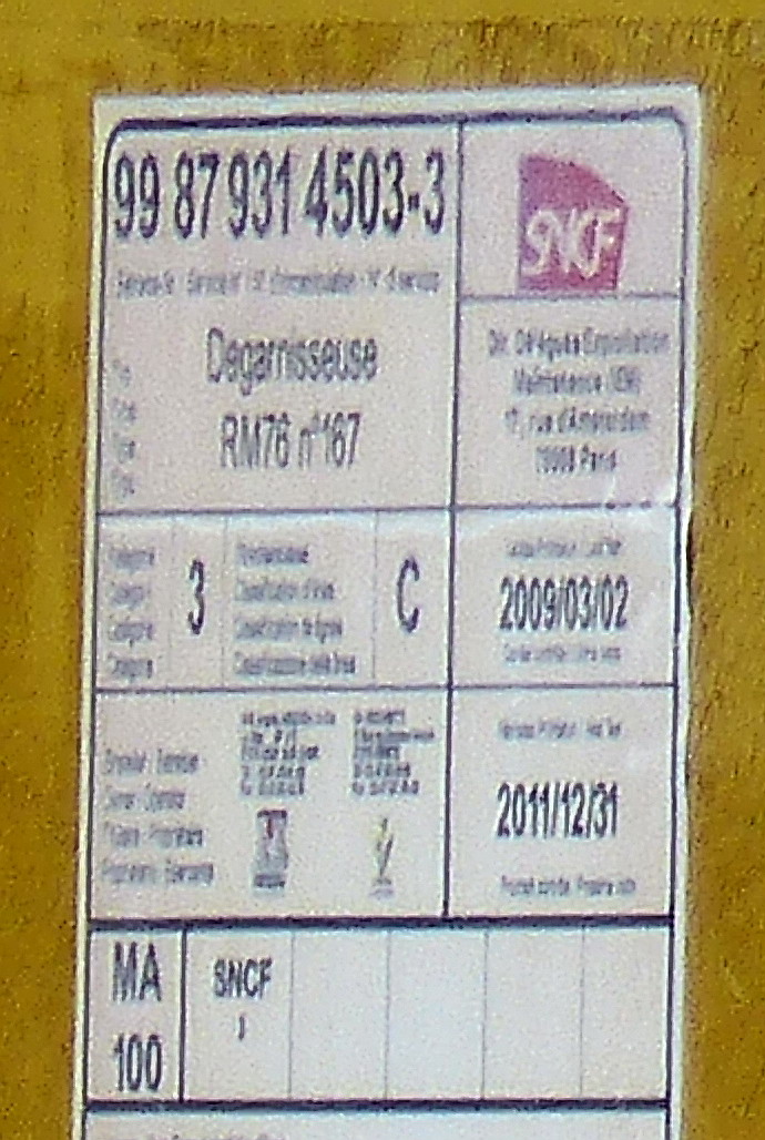 j'ai pu avoir son Agrément de travail de l'époque 02-03-2009 - 31-12-2011 avec son n° UIC 99 87 9 314 503-3 RM n°167