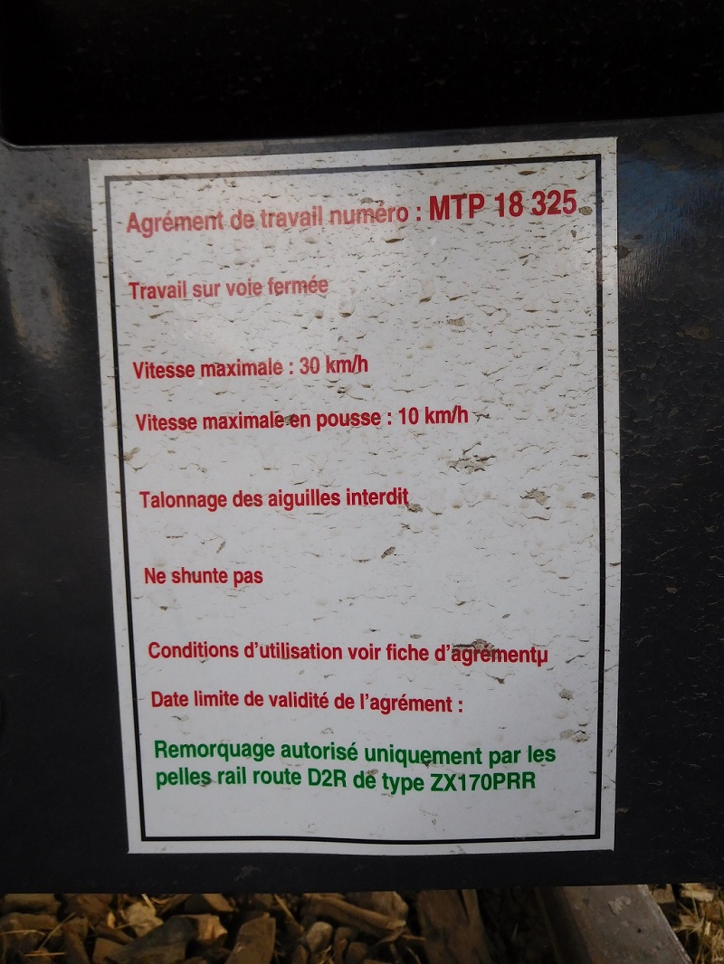 Petite remorque D2R vue en gare de La bastide - Puylaurent avec la pelle D2R ZX 170 PRR de la société EDC Terrassement.