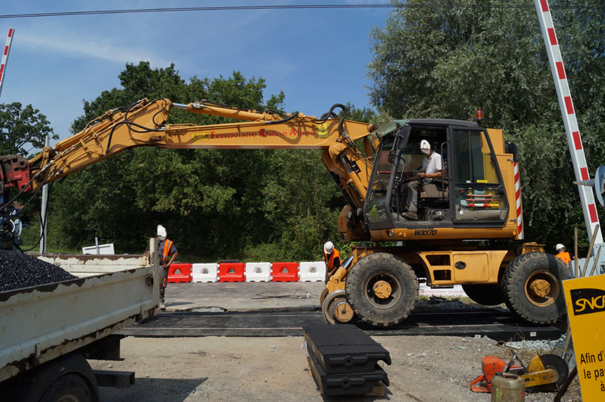 Ligne de Tram - Trains Tassin - Brignais : Pelle mécanique Rail route de l'entreprise