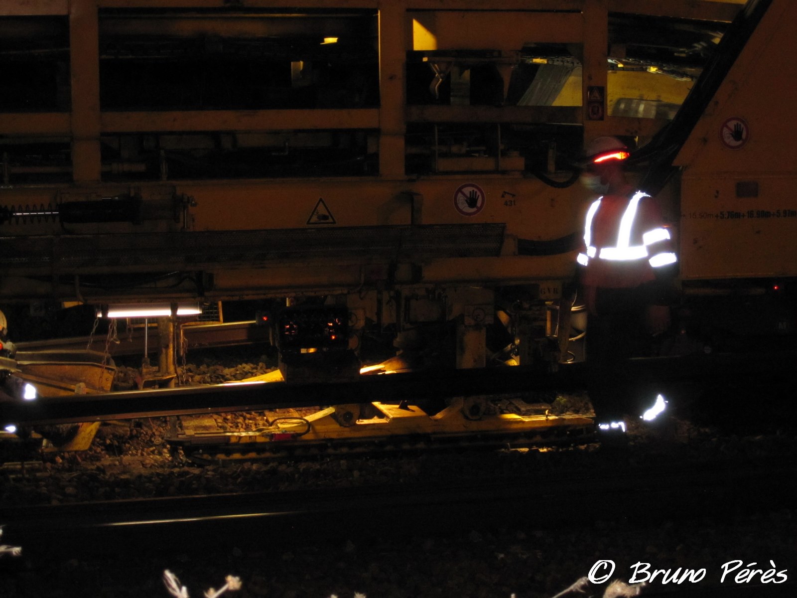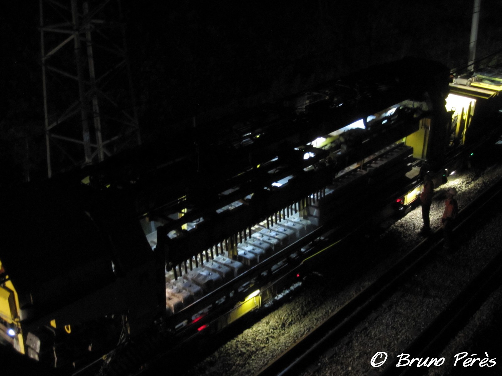 Petites photos du P95 prises cette nuit lors d'un remplacement de traverses à Roques (31).