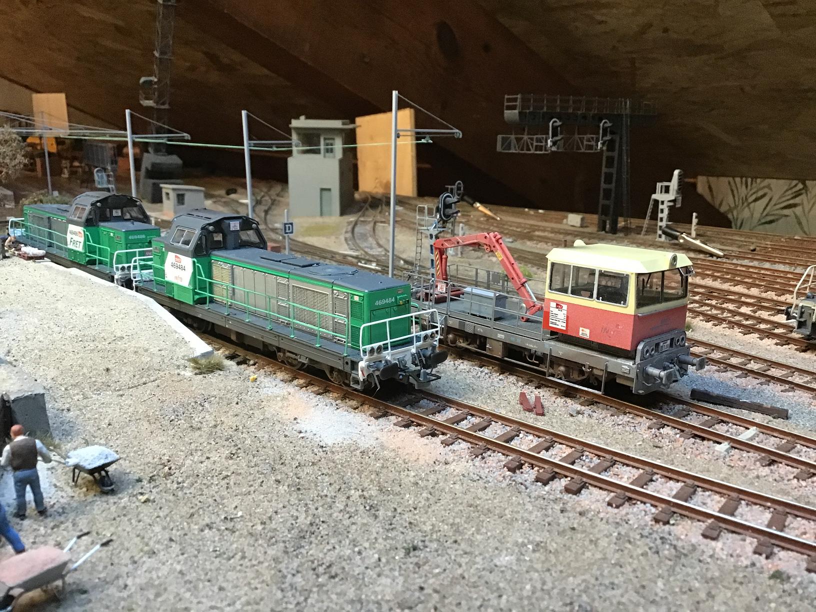 C'est la grue Jouef, reconstruite en version diesel, associée à son wagon porte flèche K5 roco modifié et un wagon atelier sur base Jouef.