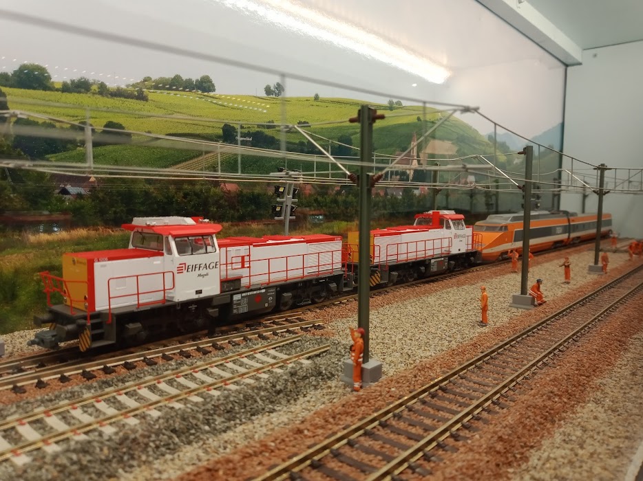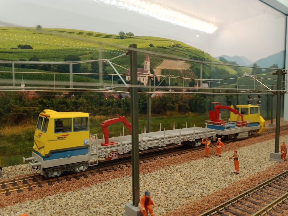 le diorama se trouve dans une vitrine qui surplombe les voie de circulation du réseau