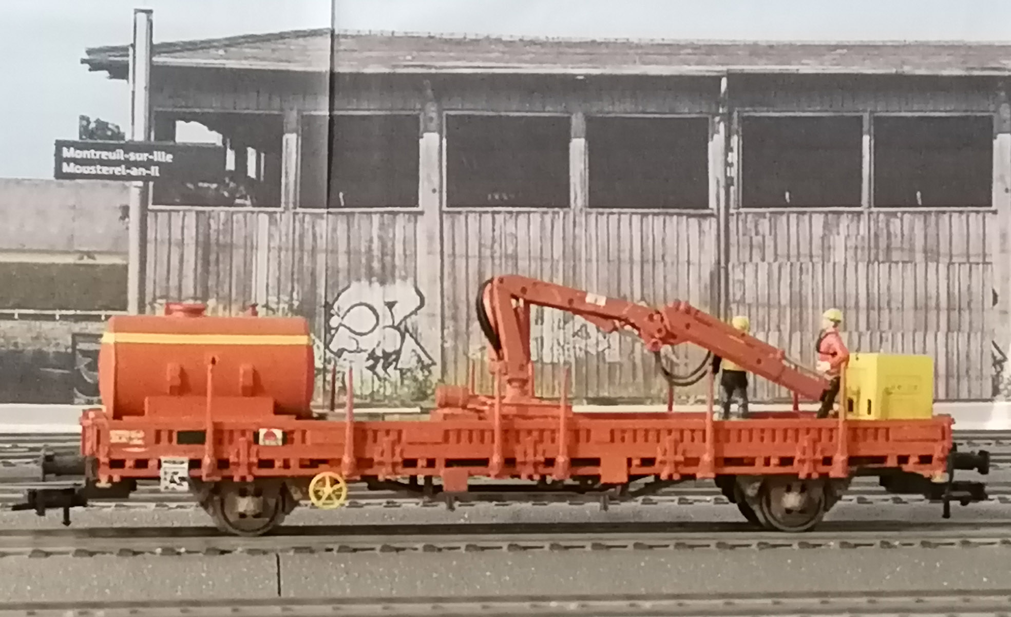 Super cette réalisation, peux tu nous dire comment tu as réalisé la grue et la citerne? Cela m'intéresse de refaire le même wagon pour reproduire cette rame: