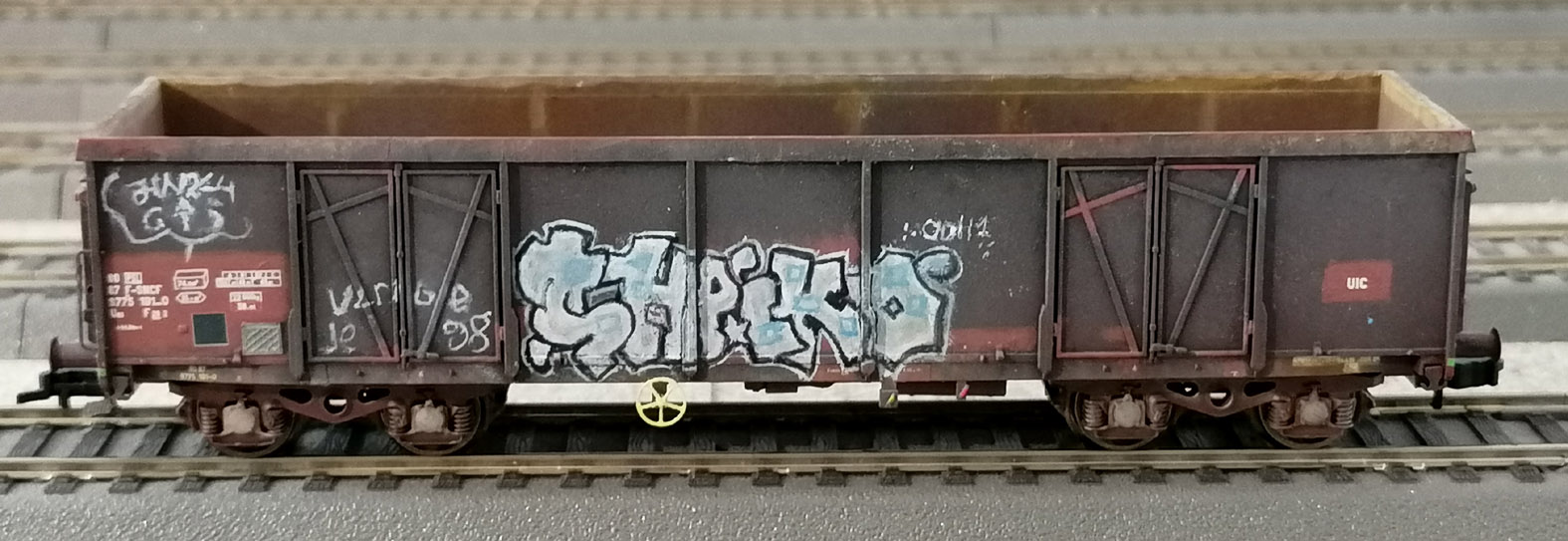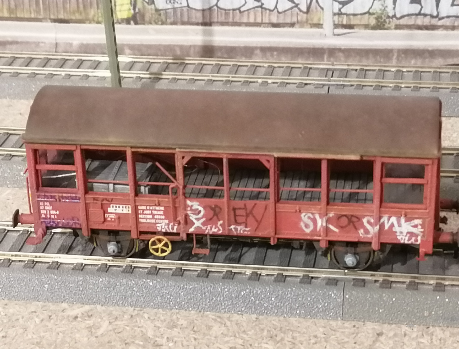 Pour s'approcher des 100000, un ajout d'un tombereau E74 patiné à partir d'un modèle REE Sud Express