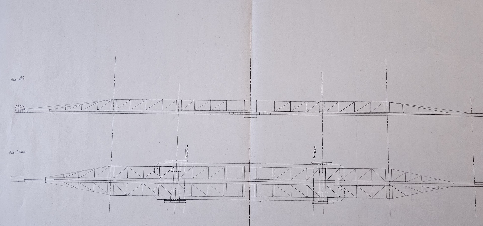 L'avancement de ces derniers jours à permis de finir le renforcement de la poutre centrale, et les marchepieds grillagés sont en cours de réalisation et de pose