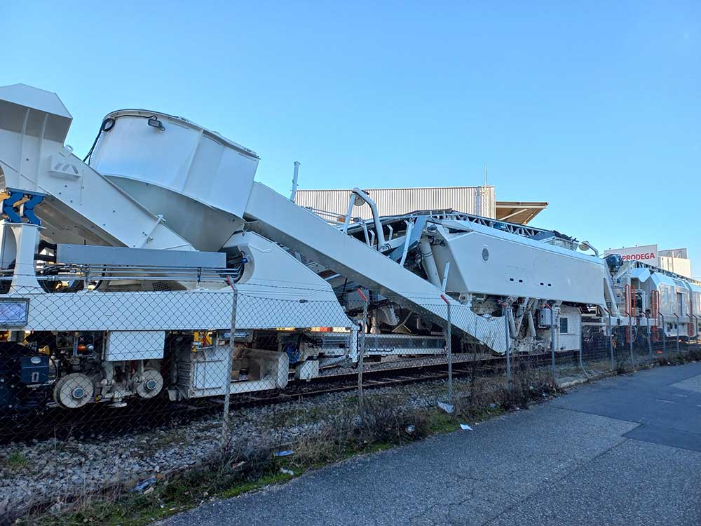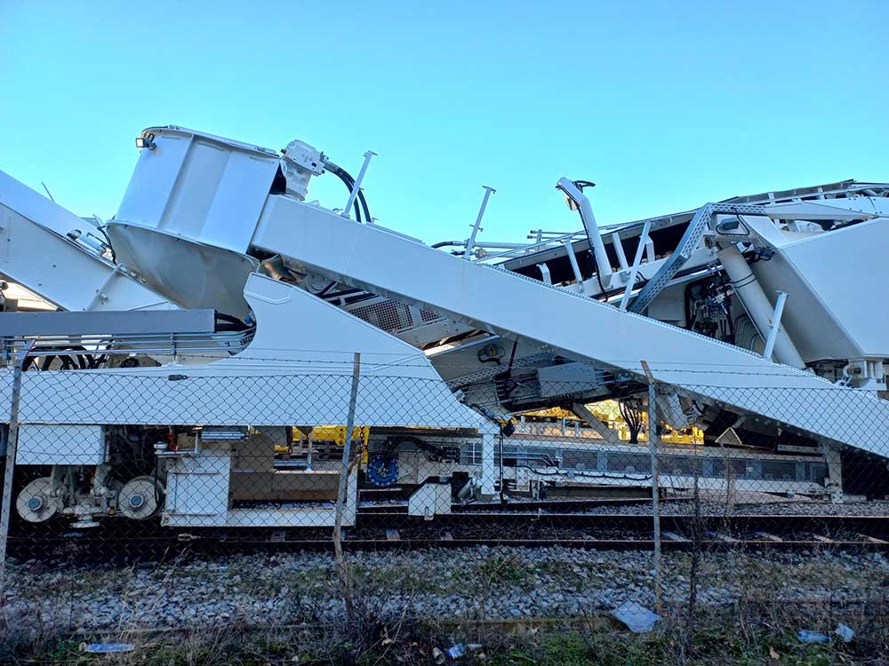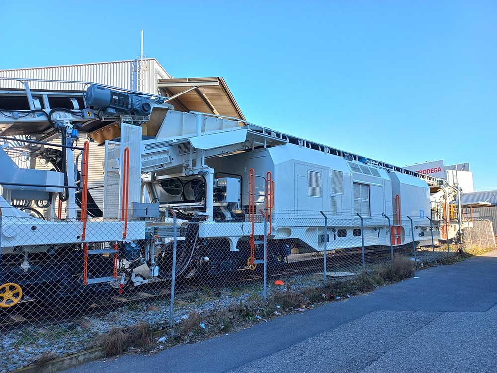 Sur celle de CGF, il y a 2 cabines, l'alimentation, la réserve de carburant et la génératrice électrique se trouvant derrière la chaîne de dégarnissage par rapport au sens de marche. Elle ne possède qu'un seul crible, a priori comme celle d'ETF.