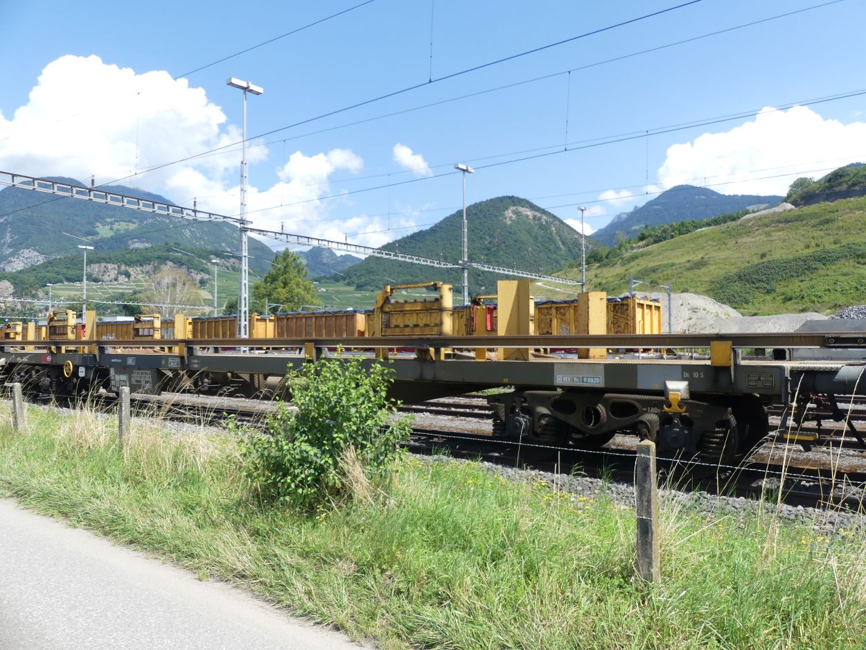 Voici l'un des trains de transport de longs rails de 108 m, numéro 9. Ces trains peuvent transporter des longs rails soudés de 108 m maximum, la longueur utilisée en Suisse.