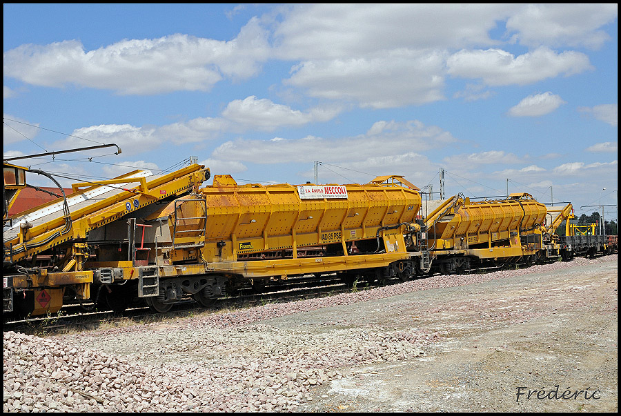 Le VAD 85 PSE N°281 de Meccoli se trouve sur les voies de garage des rame Infra/SNCF avec le wagon trémie de protection VAD