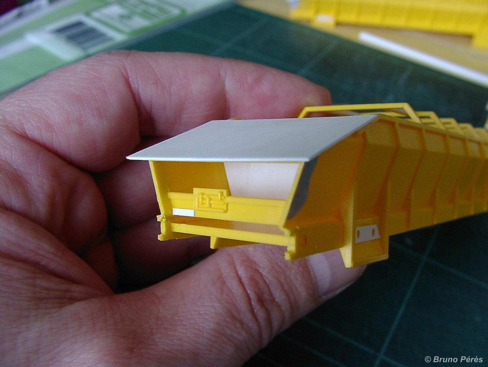 Collez un profilé Evergreen (0,25 x 1 x 4,5) sur la partie basse de la la pièce barrant horizontalement la trémie, en alignement du seul relief que vous aurez laissé.