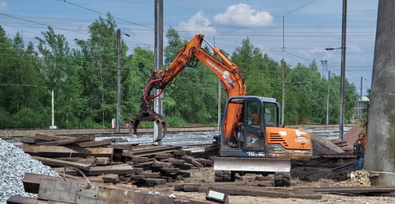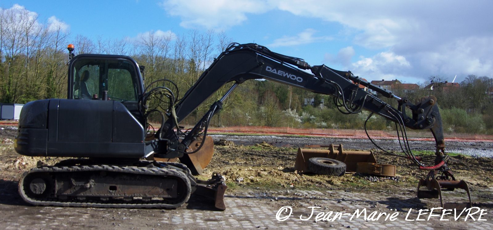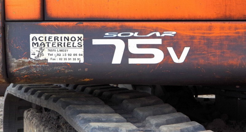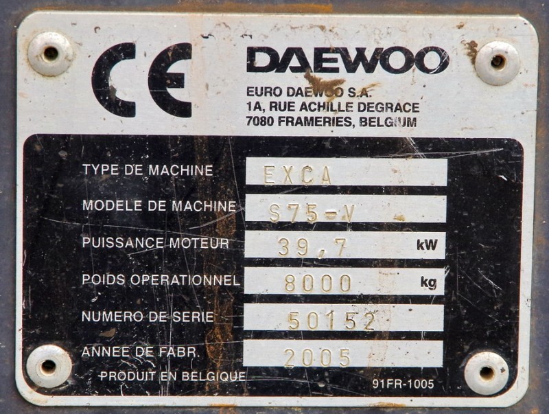 Voici une pelle route à chenilles Daewoo de type EXCA modèle Solar 75V n°50152 de 2005