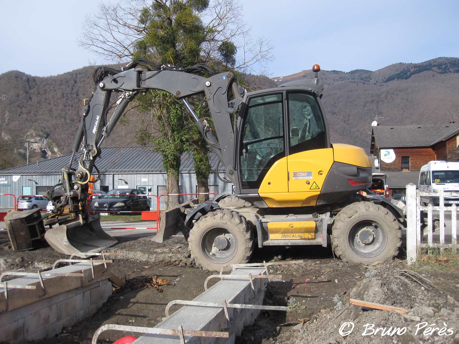 J'ignore à quelle entreprise appartient cette pelle vue en gare de Luchon (31) le 16/02/2025. Si quelqu'un a la réponse