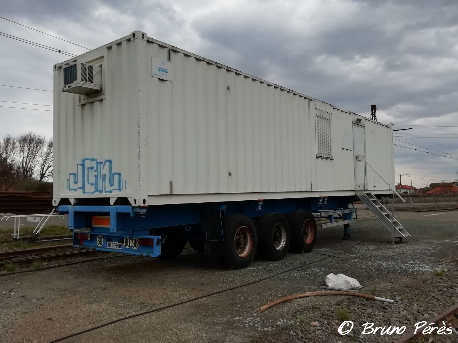Est-ce que ces remorques et bungalows appartiennent à la SNCF, ou bien sont-ils en location comme pourrait l'indiquer un autocollant sur le châssis ?