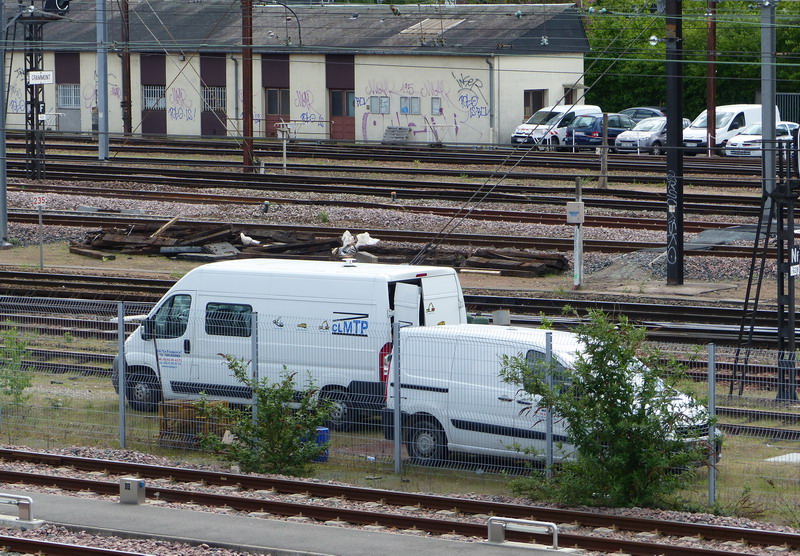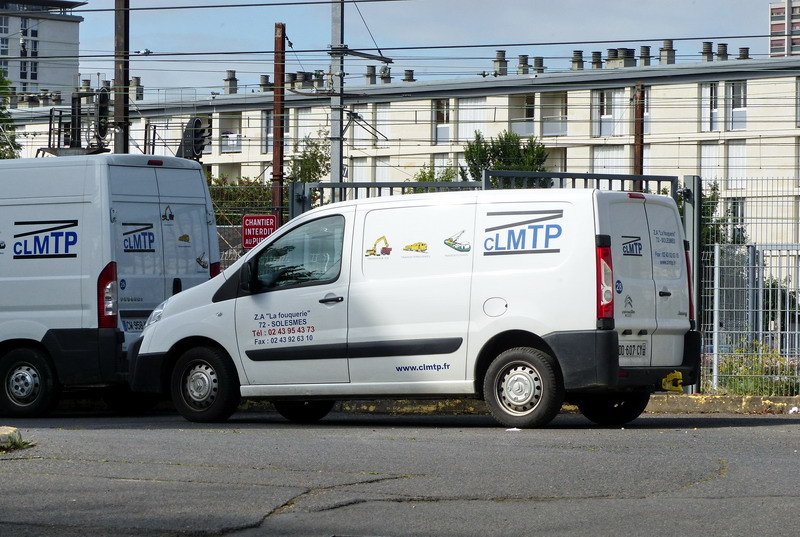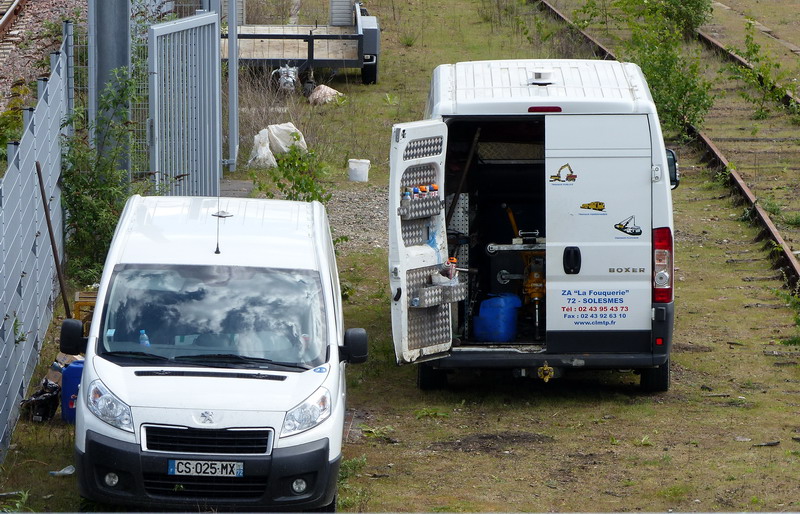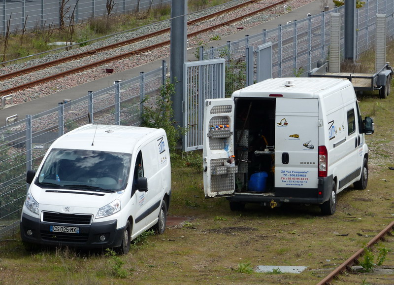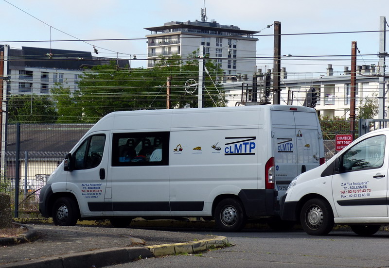 Voici trois véhicules de CLMTP (ZA "La Fouquerie" 72 Solesmes) à Tours ce jour pour la suite des travaux sur la deuxième voie annexe des