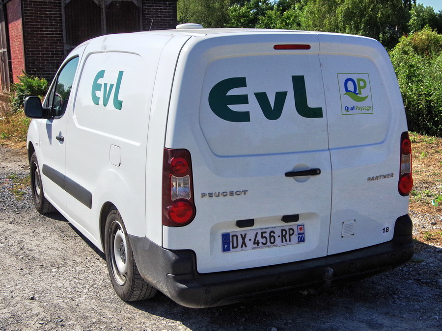 - véhicules d'EVL Peugeot Partner DX-456-RP (77) en gare de Mézières-sur-Oise le 09 juillet 2018
