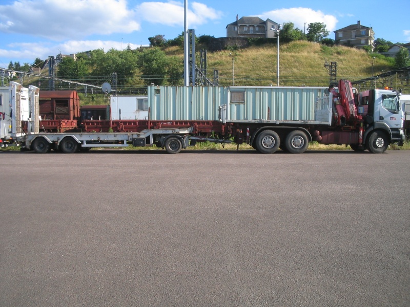 Et j'ai aussi croisé le convoi exceptionnel présenté en début du post, mais chargé cette fois! Un LFT Fassetta a pris la place de la MRT et une pelle Schaeff est sur la remorque (il s'agit de "La vieille" présentée sur ce forum).