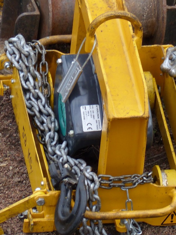 avec 2 portiques Geismar CMU 1600Kg du Crem Région de Tours et d'un palan à chaine manuel pour le remplacement de rails de petite
