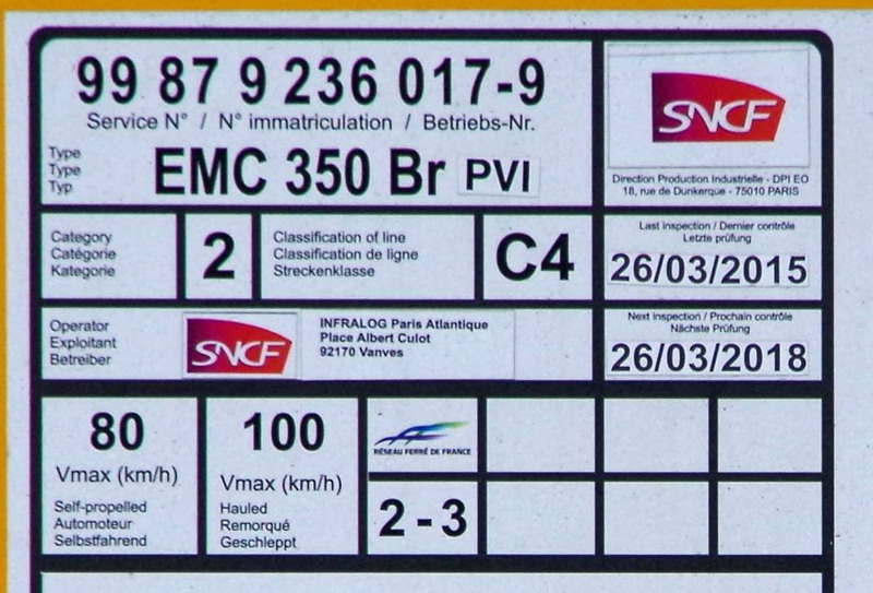 Le voici avec son nouveau n° EMC 7.350 Br PVI - 99 87 9 237 017-9 Infralog Paris Atlantique (ex 7.367 SNCF-RN) photos de Gtr Lefèvre le 17-11-2018 gare de Compiègne