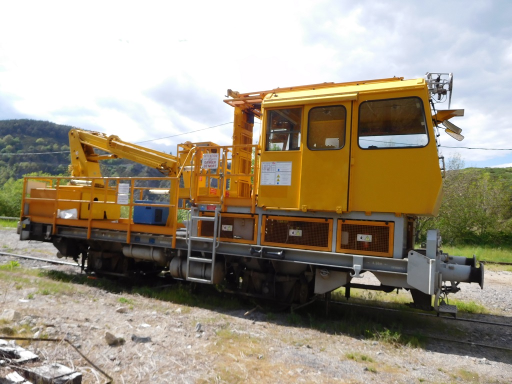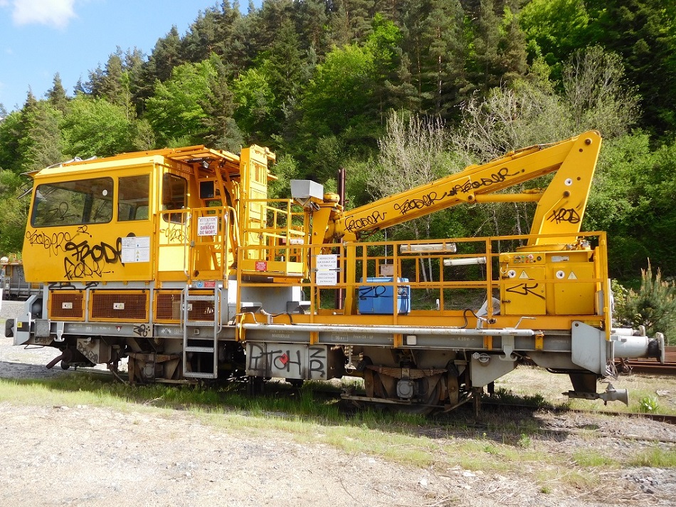 La draisine-grue MR 7.359 vient de dépasser la gare de Toulon côté est et croise un TGV SE s'y arrêtant.