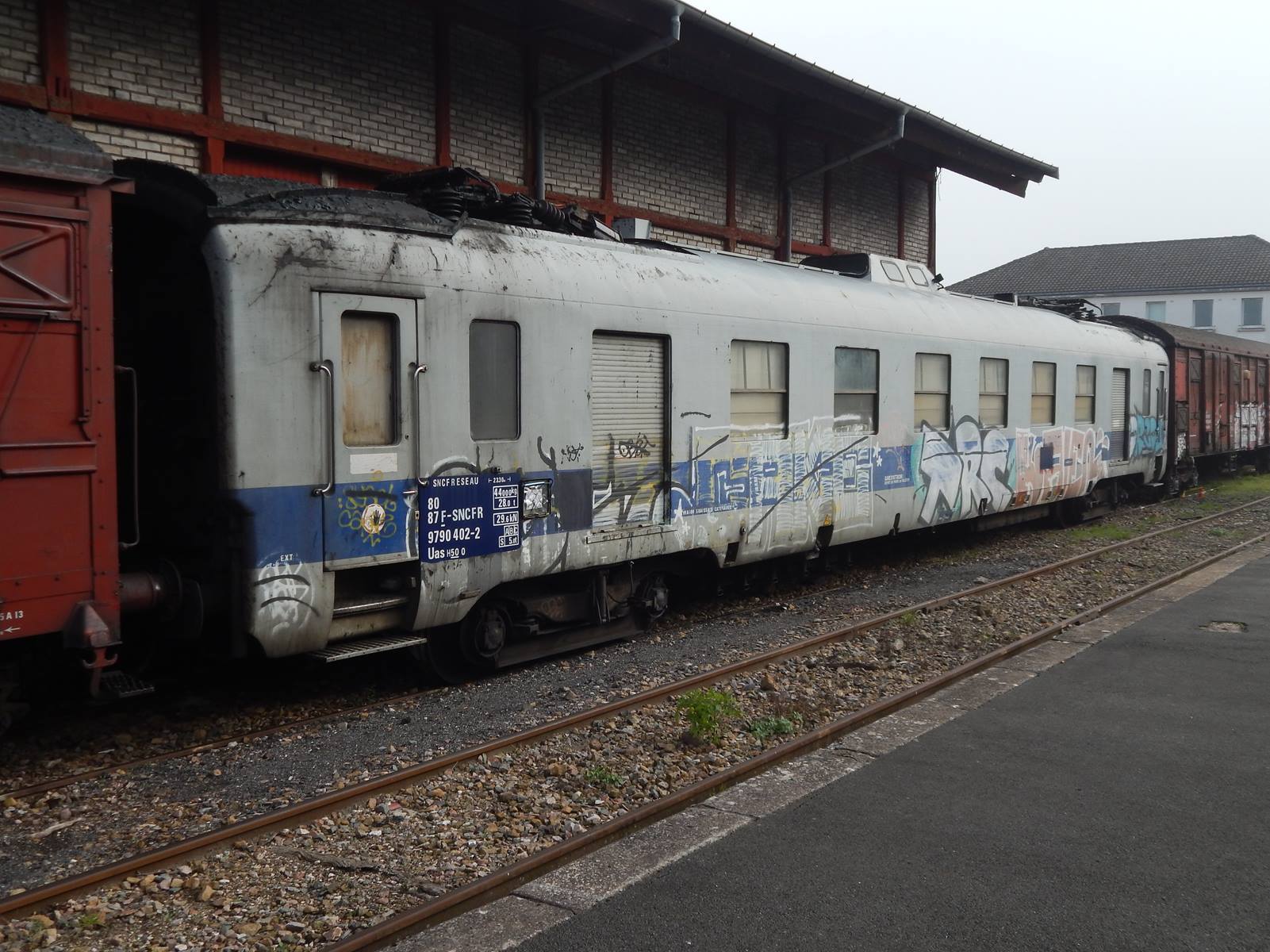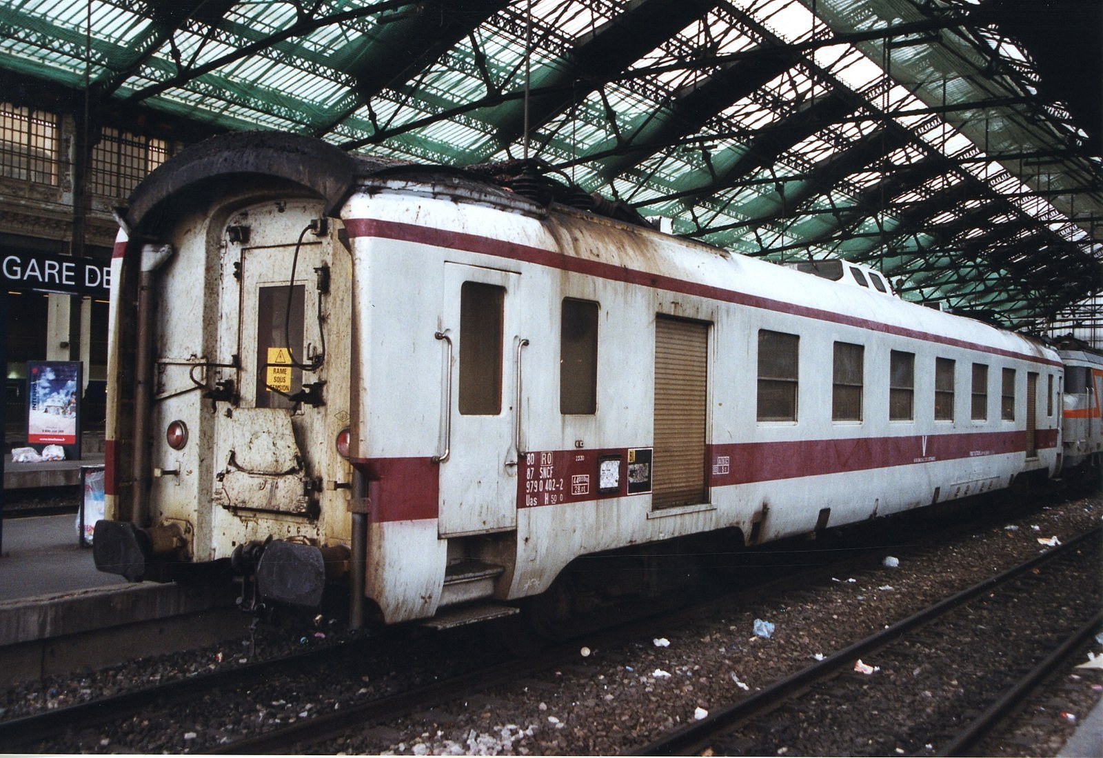 Voici quelques images de l'ex DEV AO devenue wagon graisseur de caténaire 80 87 979 0 402-2 RO, saisi en Gare de Lyon Novembre 2003.