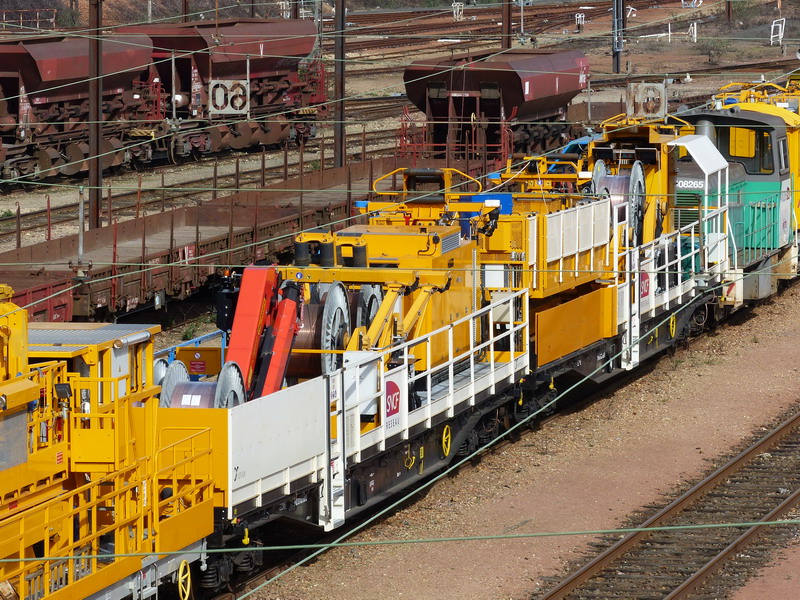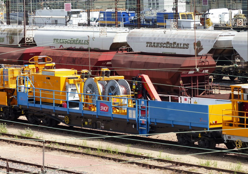 avec le wagon Dérouleur de caténaire WDC 99 87 9 332 103-0 SNCF RESEAU Infralog Centre