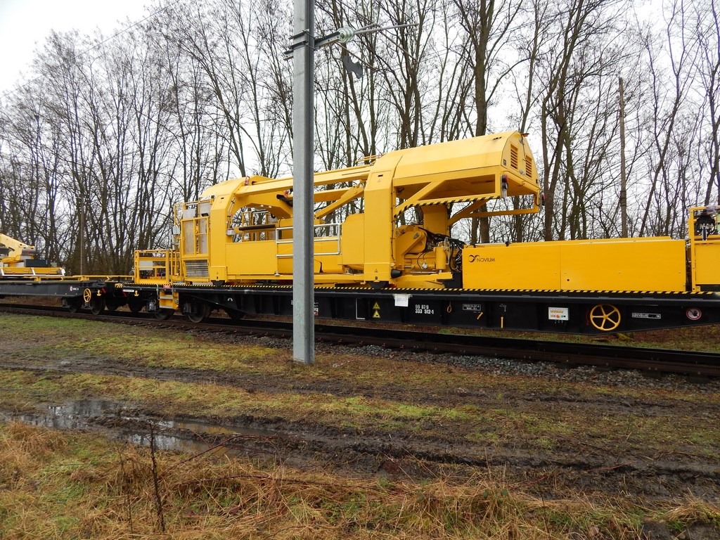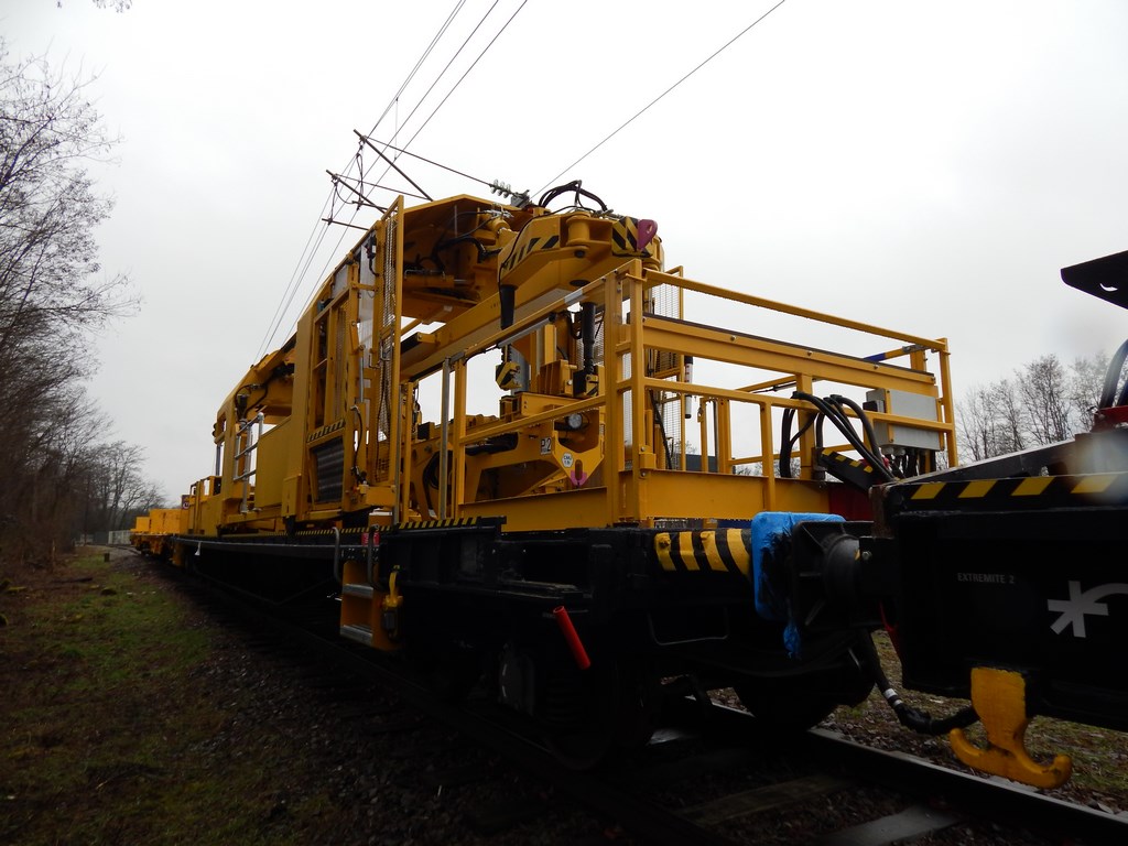 je pense, sous toutes reserves, qu'il va chercher un poteau sur un wagon plat (il était attelé à 2 WTT TSO), le fait pivoter verticalement et le maintient le temps qu'il soit boulonné...... :idea: