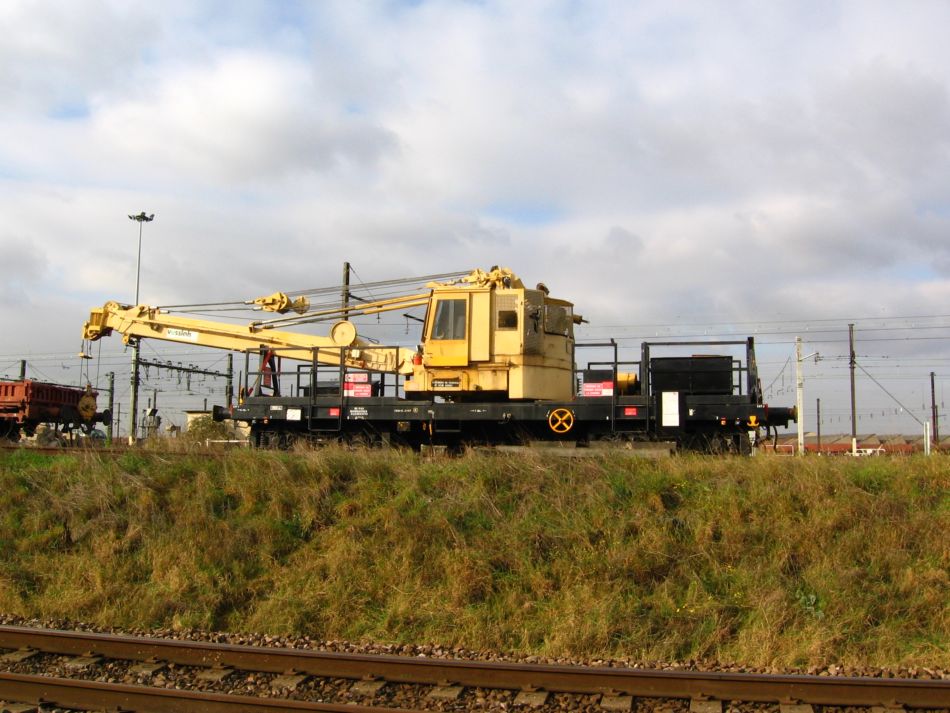 Voici un Wagon grue automoteur de Vossloh Infrastructure Services, maison mère d'ETF, hier à Villeneuve Saint Georges.