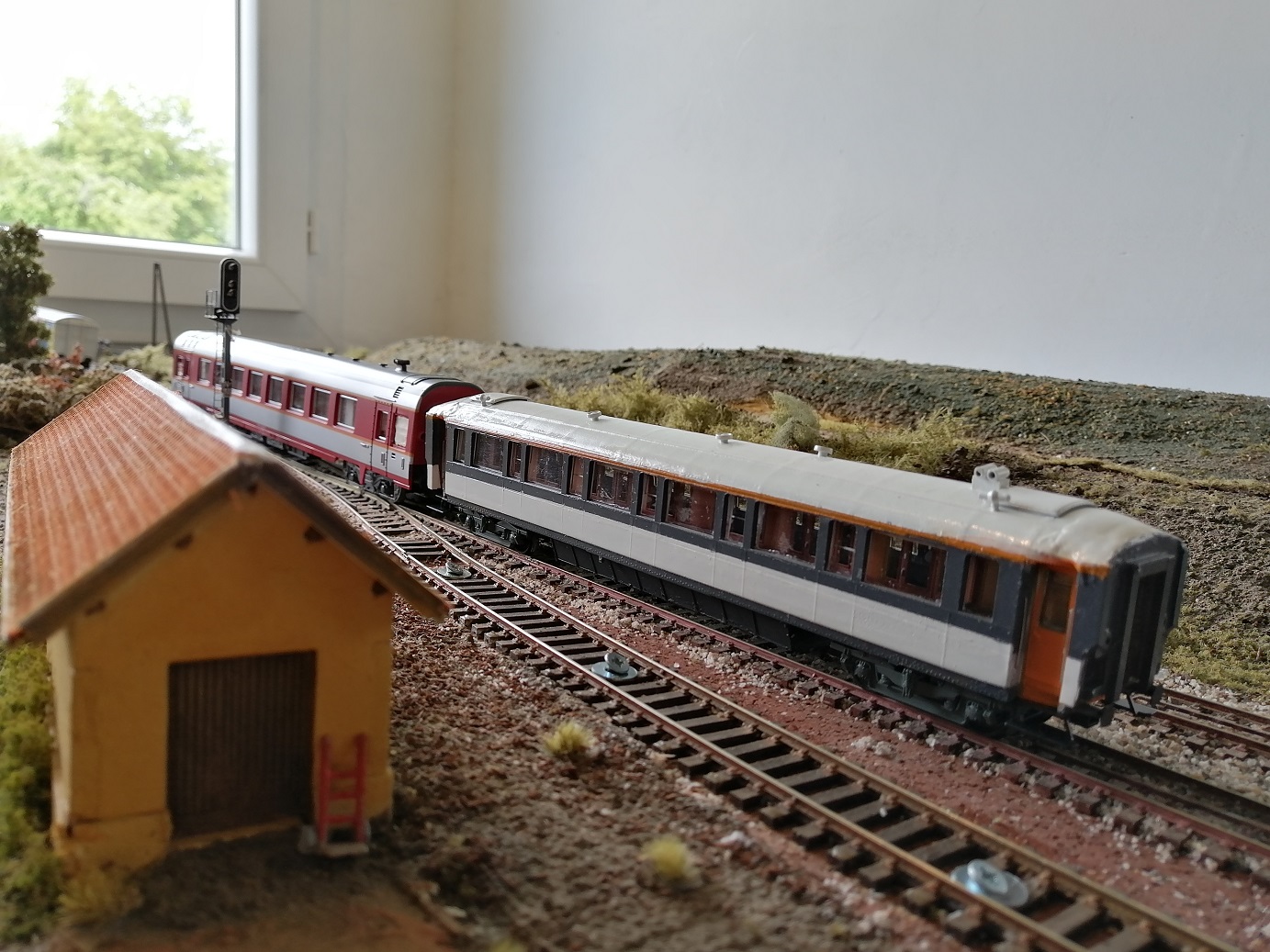 Si ça peut aider, je joins une quatrième photo (diapo) montrant ces deux même voitures, mais cette fois prises en gare d'Alençon (61) en juin 1990.