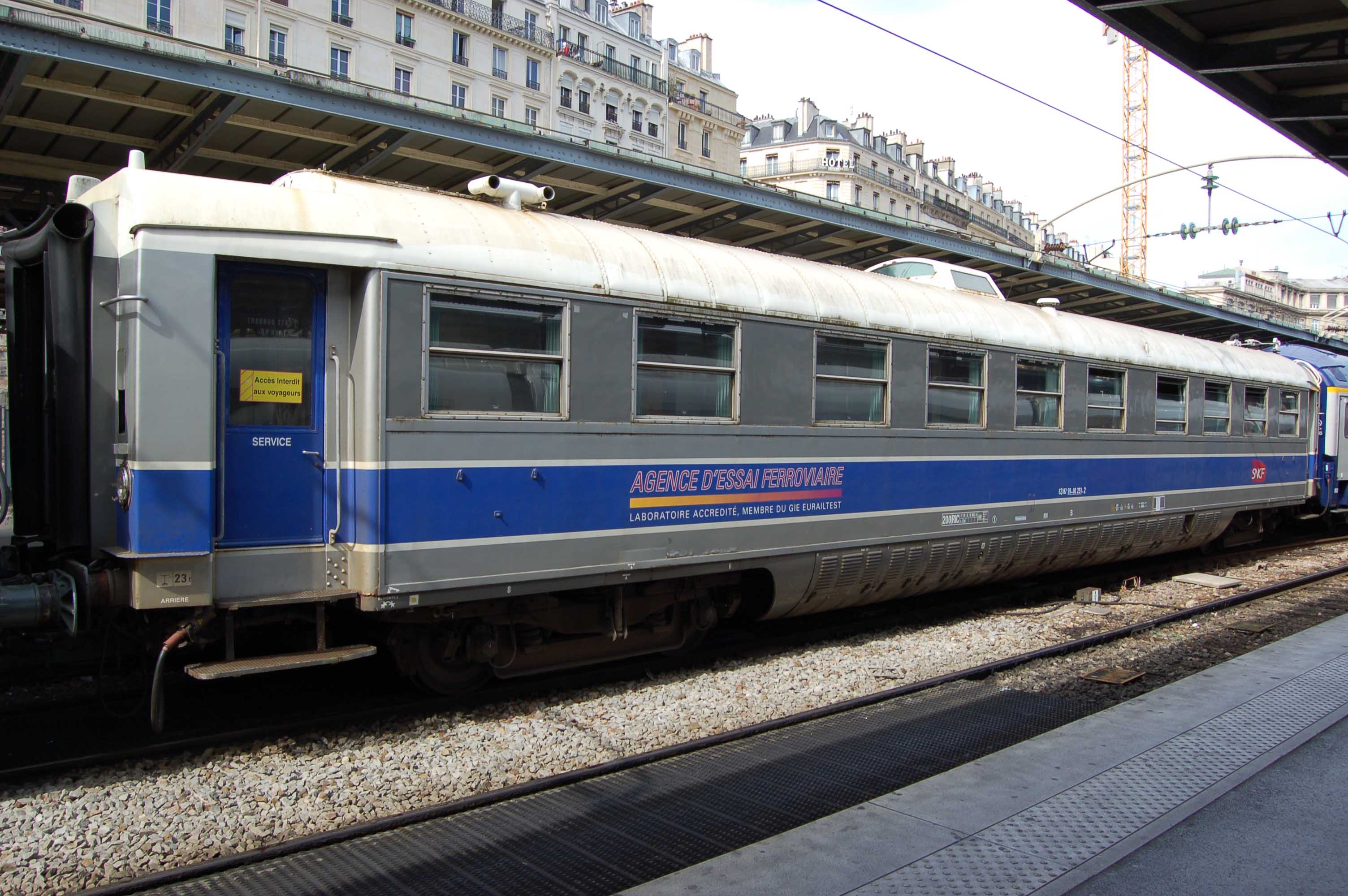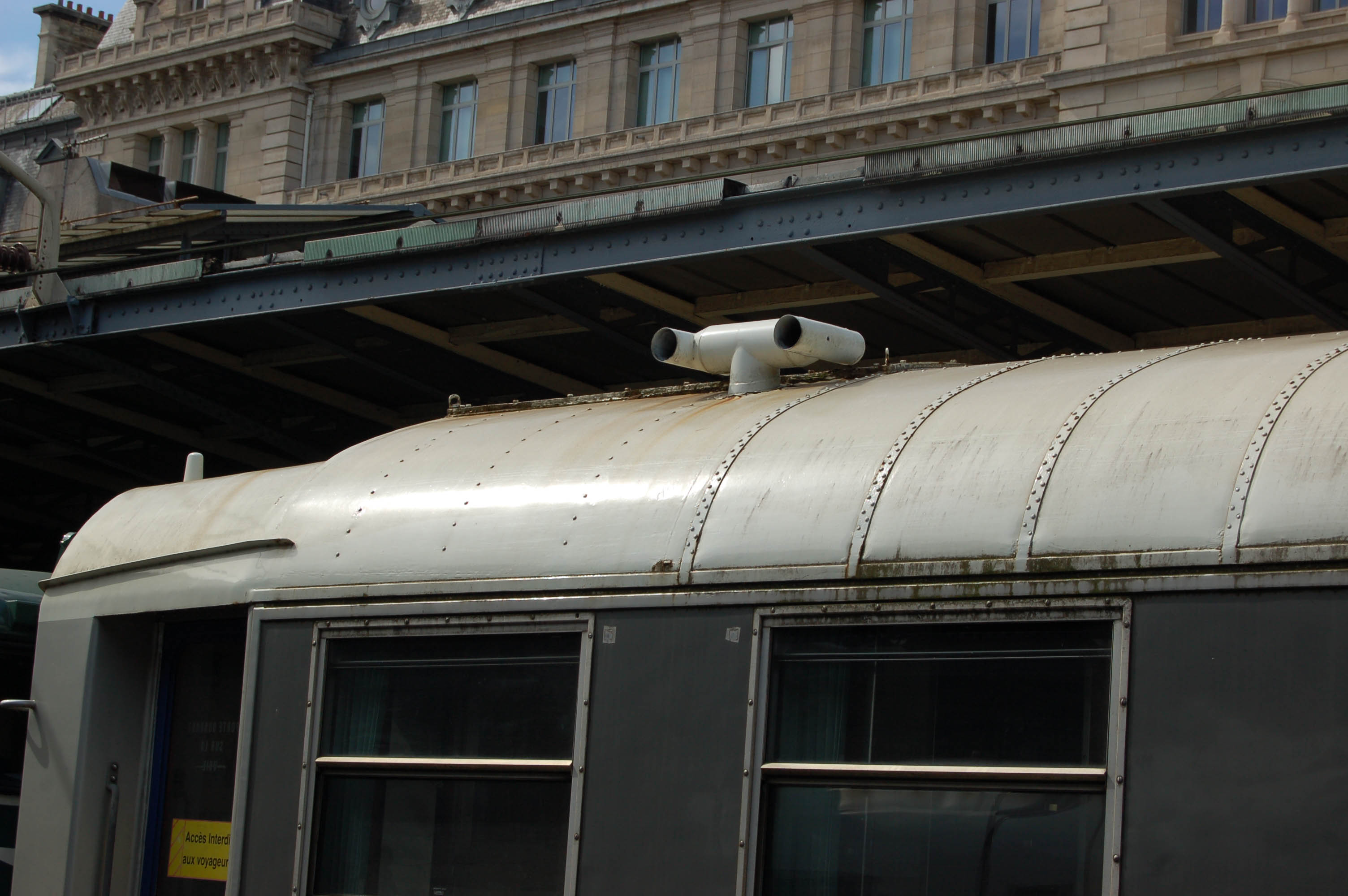 Cette voiture stationnait en septembre 2018 en gare de Paris Est avec du matériel présenté par la cité du train.