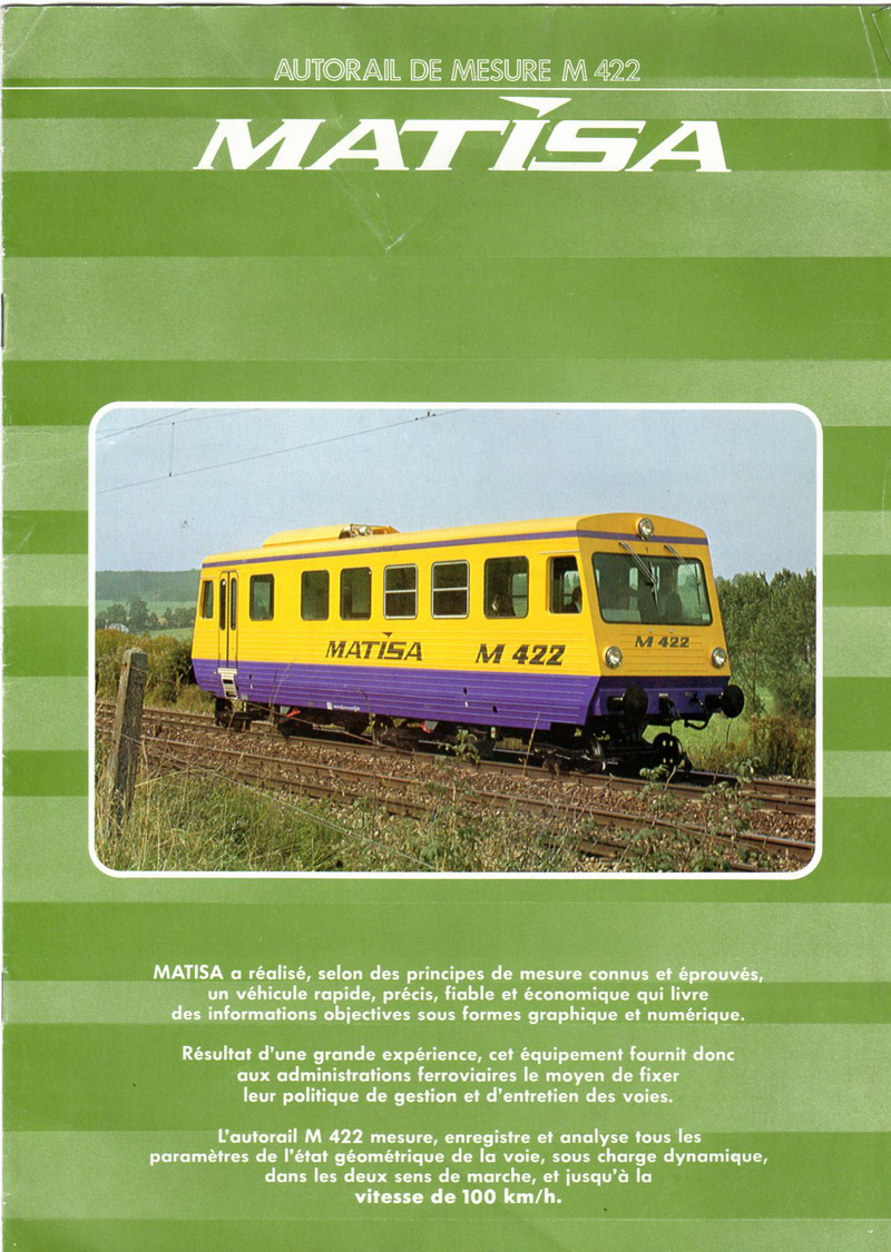 Voici l'autorail M 422 de MATISA pour le contrôle de la géométrie de la voie (une documentation des années 1975/1980)