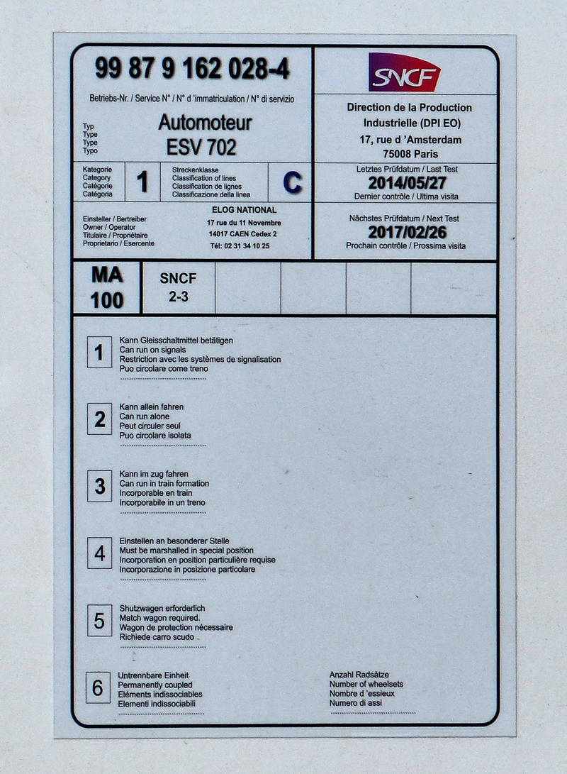 Voici l'automoteur ESV 702 construit par la Socofer N° UIC 99 87 9 162 028-4 - SNCF-RO qui stationne sur les voies de garage Infra/SNCF