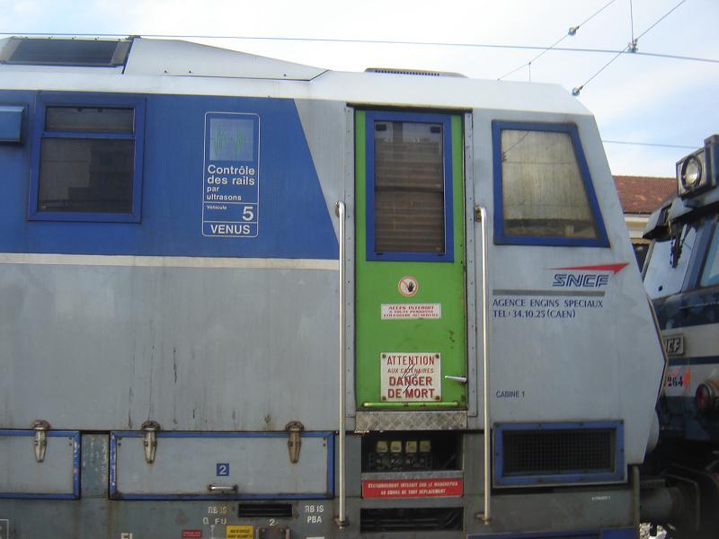 Et si j'en crois ce qui est écrit, c'est une voiture de contrôle des rails par ultrasons. A ce qu'il parrait cette méthode est la meilleure pour regarder ce qu'il se passe dans le rail.