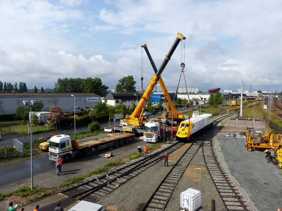 Pour répondre à l'Artiste: le transfert s'effectue en camion car la draisine n'est pas encore agréée. C'est justement pour entamer les tous premiers essais d'agrément sur SEA qu'elle se rend sur la base de Maillé-Nouâtre. S'il avait fallu la transférer par le rail, elle aurait dû obtenir le statut de" marchandise roulante" ce qui est très contraignant (cf. RC A 7d n°1 - Acceptation d'un matériel roulant n'effectuant pas d'activité de transport ... AMEC ou d'un agrément de circulation dit "marchandise roulante" à trouver sur le site de l'EPSF) et compliqué à organiser. Et au final, largement plus risqué et onéreux. :petitvieux: