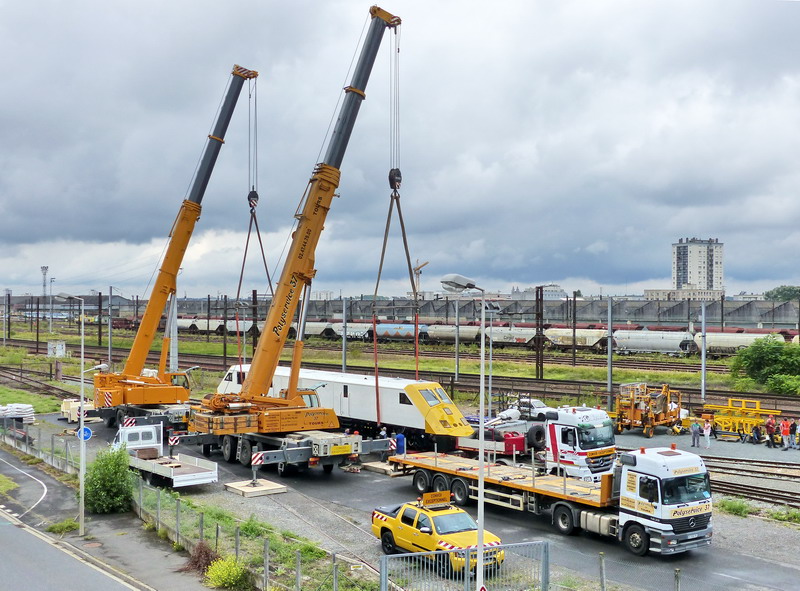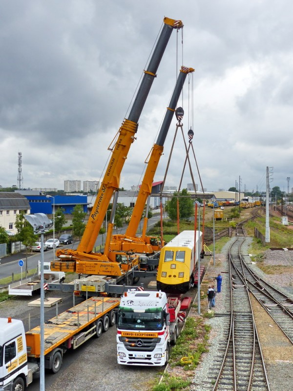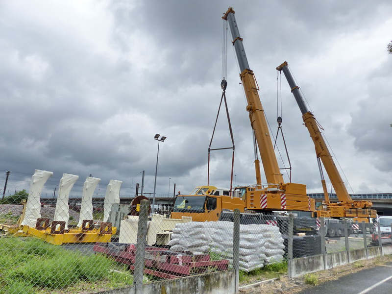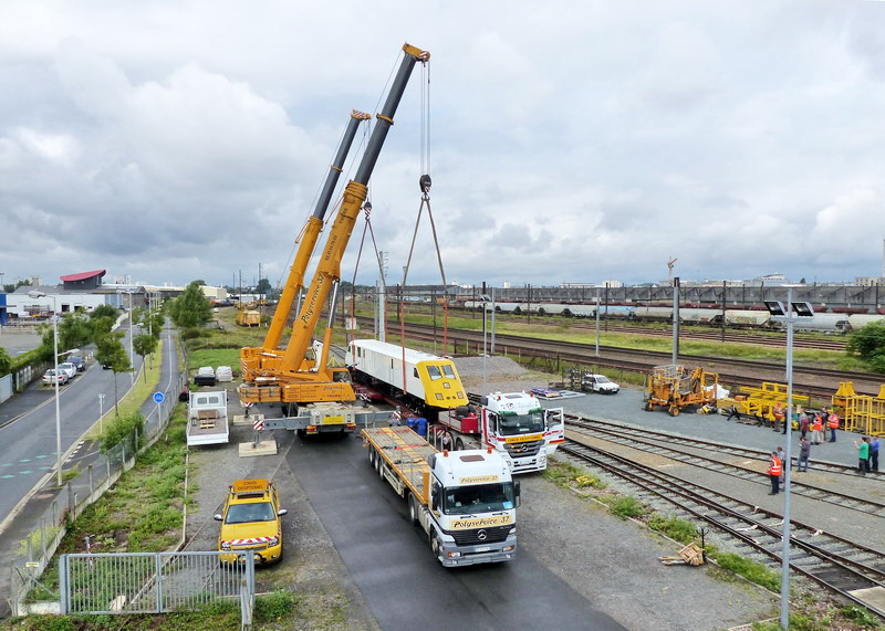 il est 10h41/42 les élingues de levage son installées sur les quatre ancrages du BROOM rétractable et le levage commence