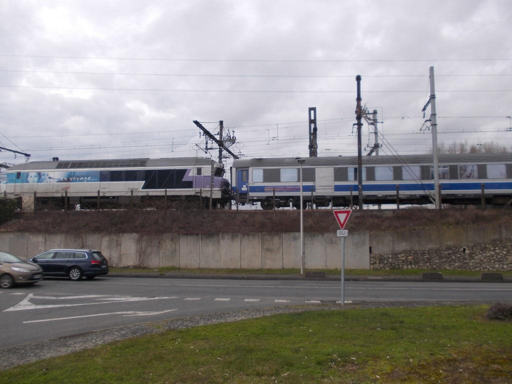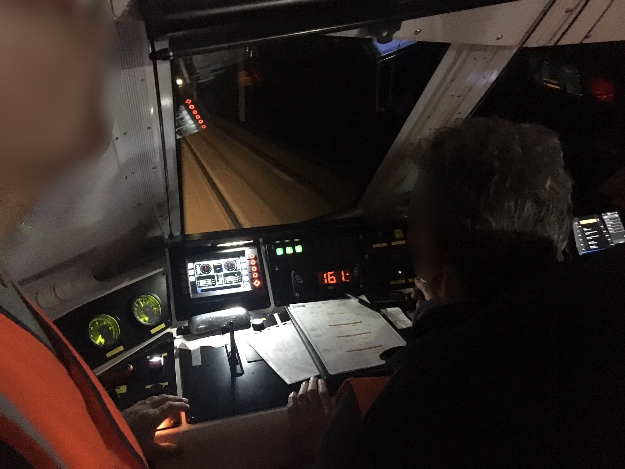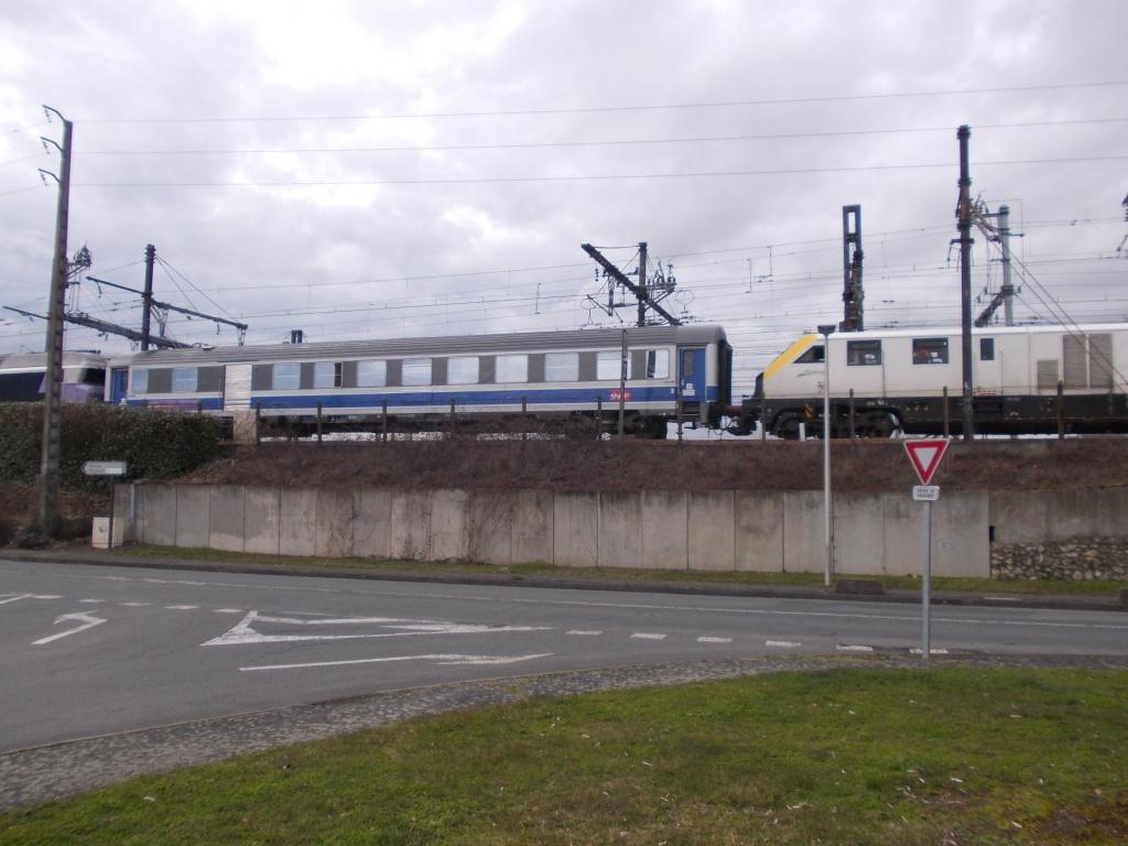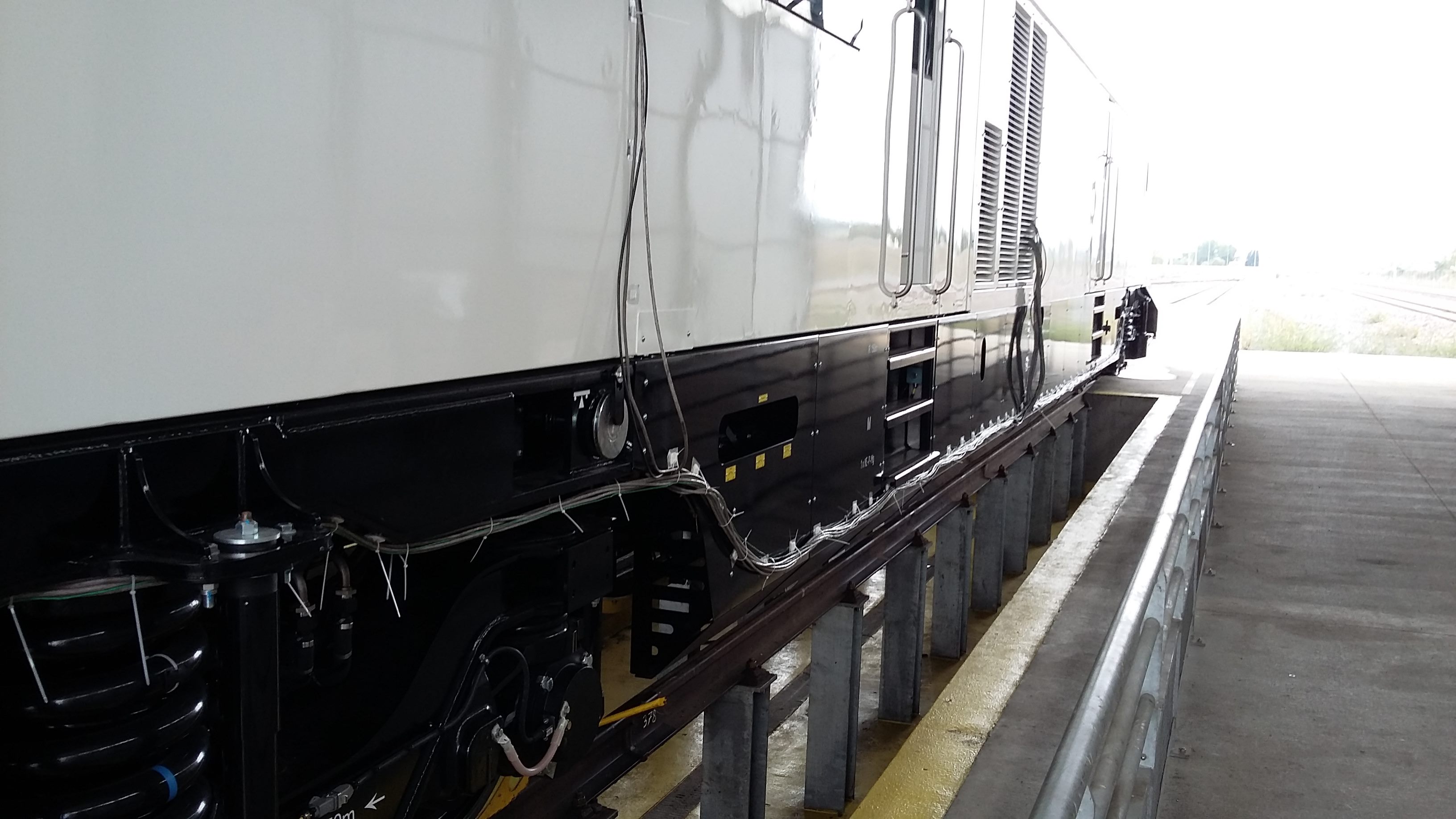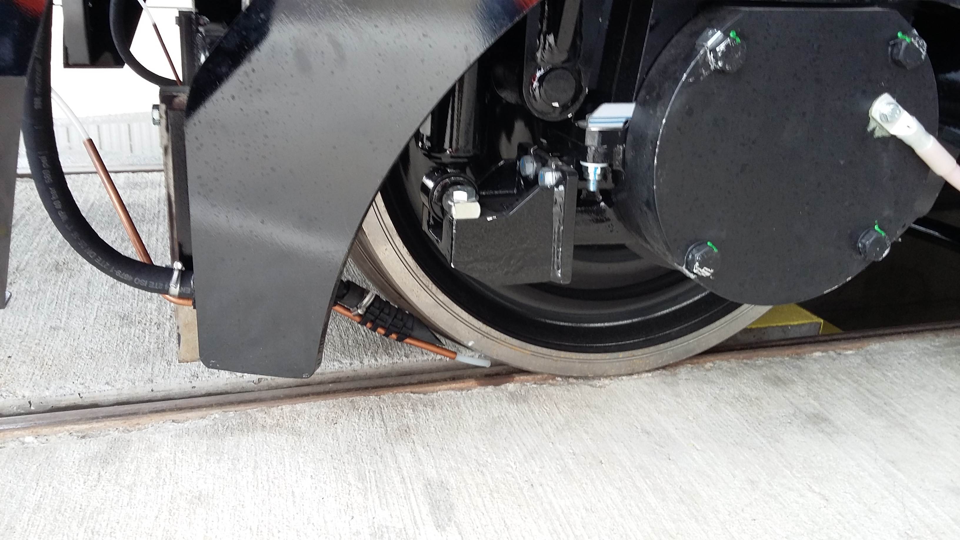 l'AEF a installé son lot de capteurs avec des câbles qui cheminent un peu partout. Pour les essais de freinage une installation qui crache de l'eau à savonneuse pour être dans les conditions d'adhérence rail-roue les plus défavorables.