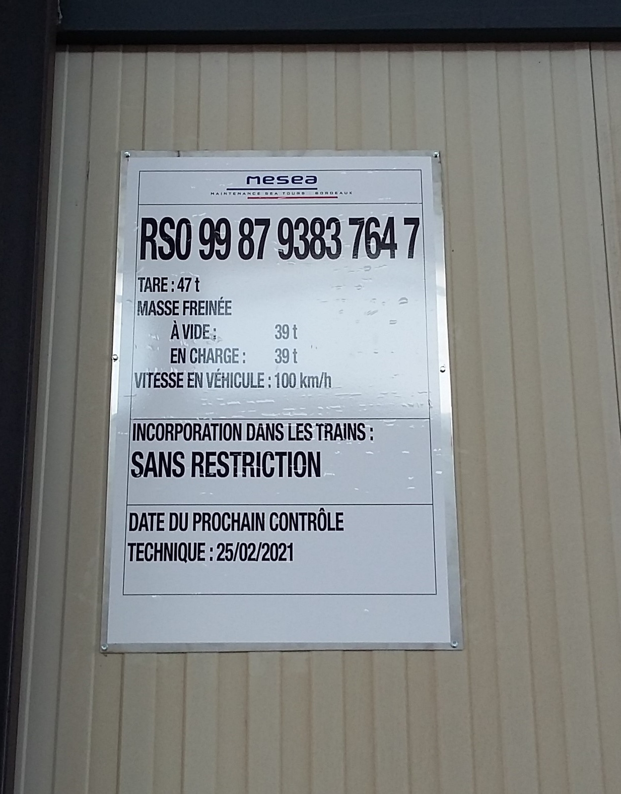 Voici l'agrément du wagon apposé sur la "cabine".