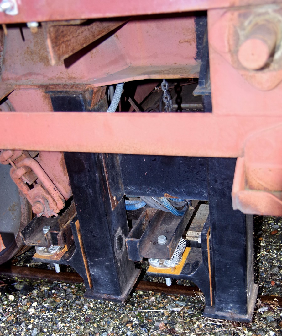 avec un container pour la télémétrie (Dispositif Remorqué d'Inspection de la Géométrie de la voie) et qui appartient maintenant